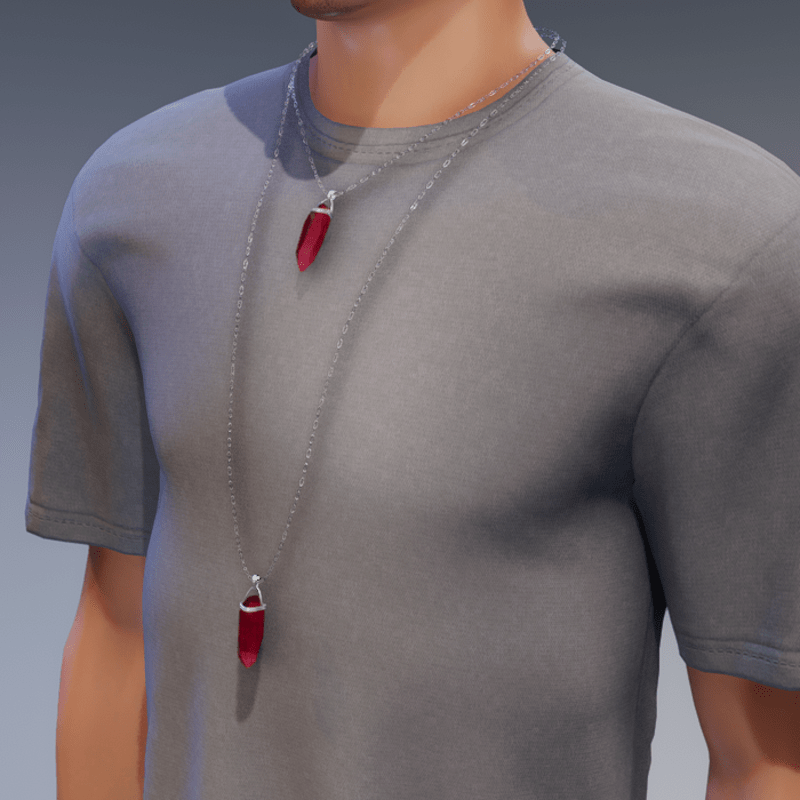 A double layered crystal pendant accessory. Located in the necklace slot/category. Fitted to male framed avatars or avatars with flatter chests. Should fit most chest sizes and over clothing with minor adjustments. The pendant is fully transformable: It can be scaled smaller or larger and positioned up, down, rotated or moved side to side. Contact "TheNick-1981" through Sansar or Sansar discord if you need re-rigging, a custom design or if there is a problem etc.