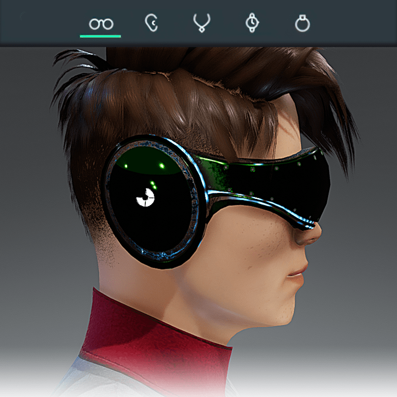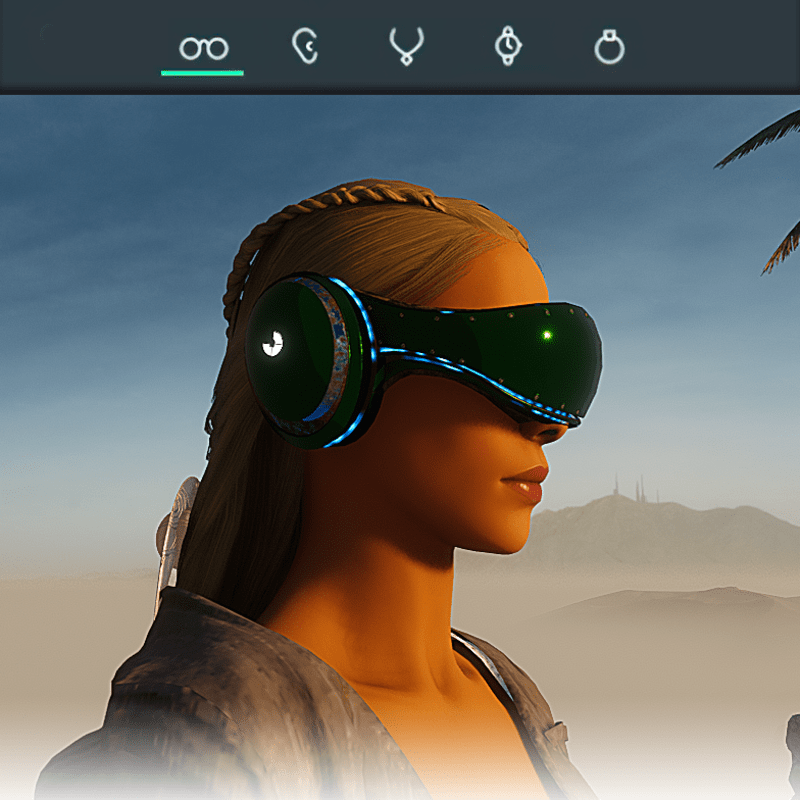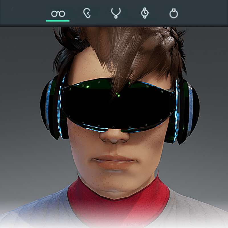 Visionary Design for a VR Headset exclusive for the Sansar Metaverse. These Vr Glasses do not mess up your avatar's hair. Minimal and Elegant Design. Vr glasses with headphones. Chrome Texture. Animated lights Inside. Unisex. Matches with all humanoid avatars. No need for adjustments for the default 2.0 Avatar of Sansar.