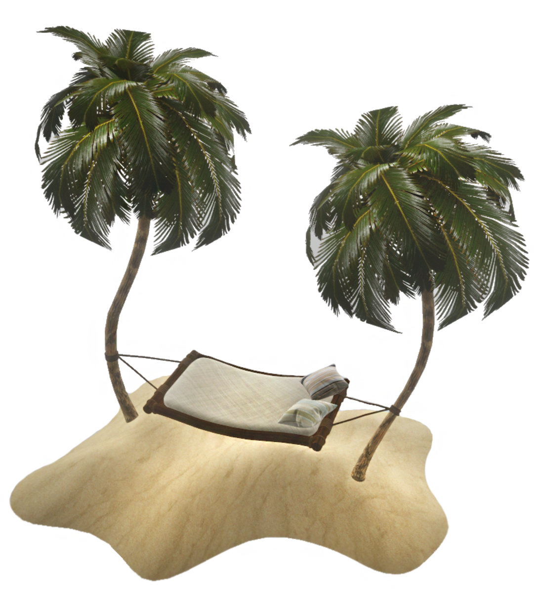 Twin Palms Hammock Island. Relax by the beach in style with this twin palm island hammock. Island is walkable. Item will be updated as more features are released for Sansar.