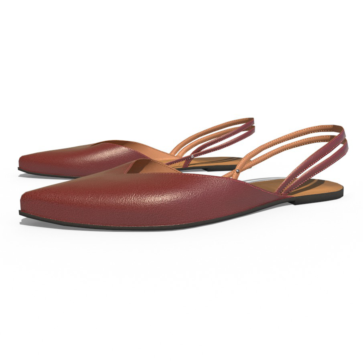 Women shoes Flat shoe with back straps, tosca leather color. See at: https://atlas.sansar.com/experiences/kokoia/passion-for-shoes