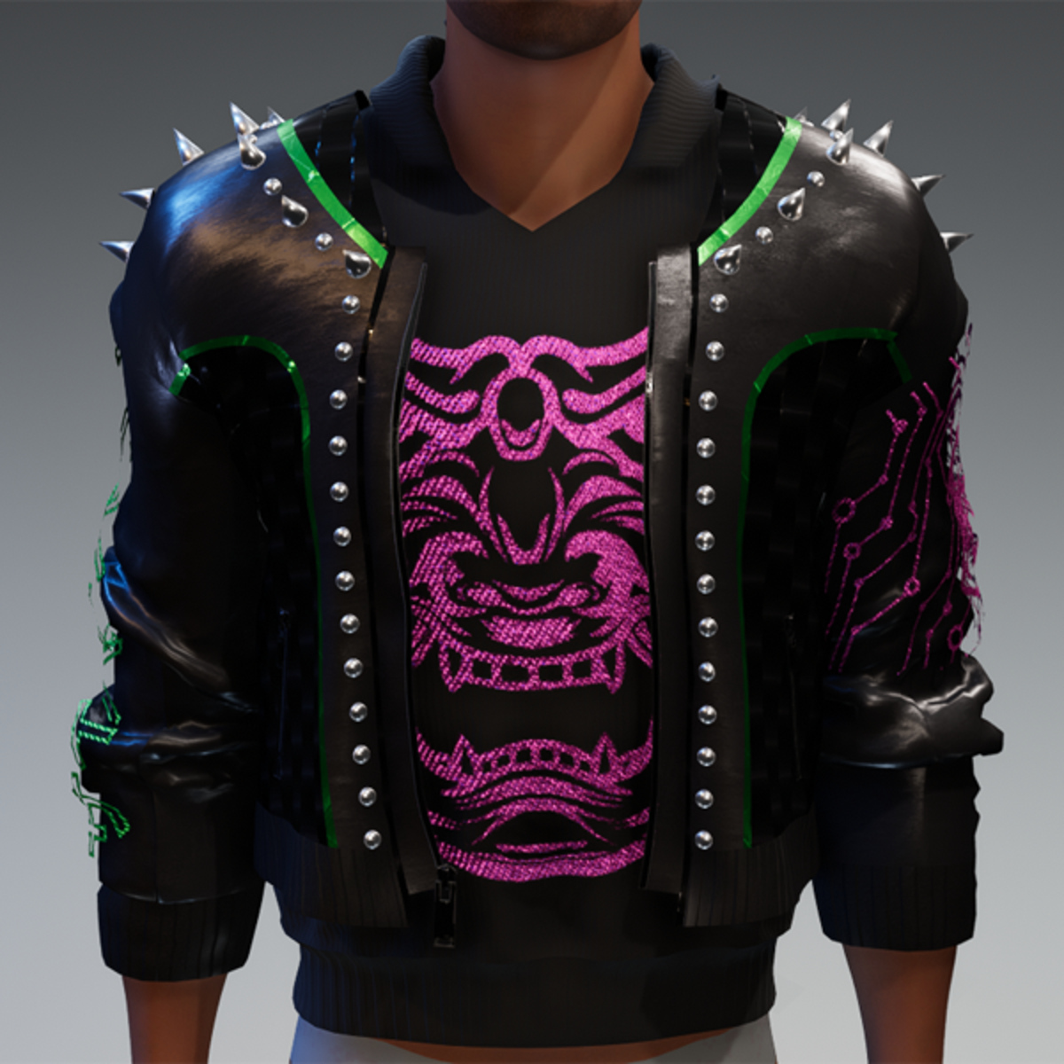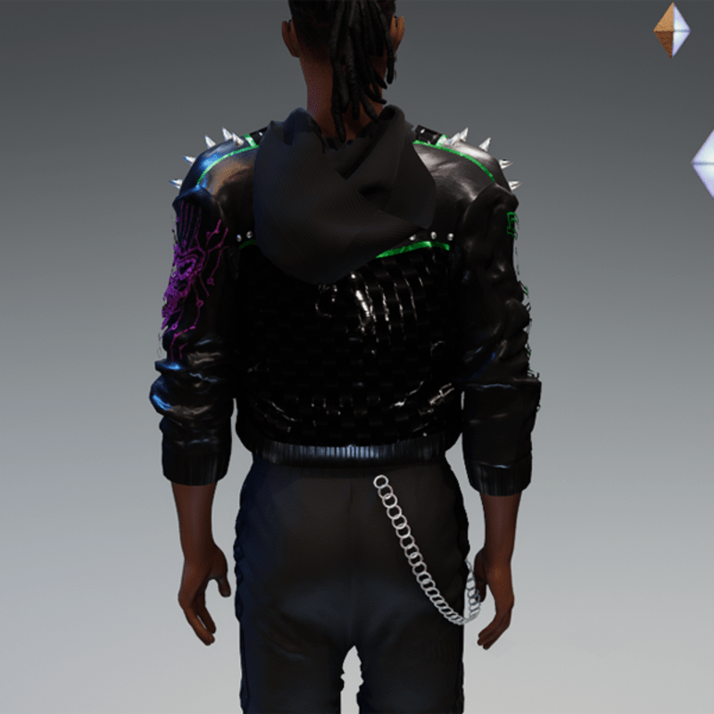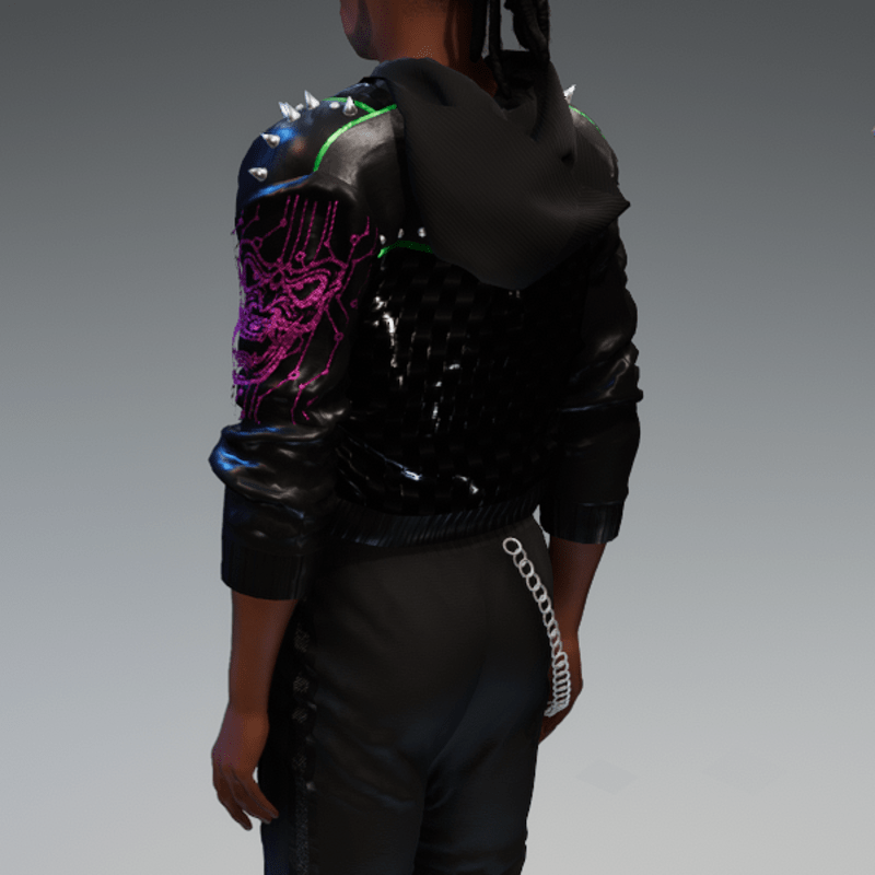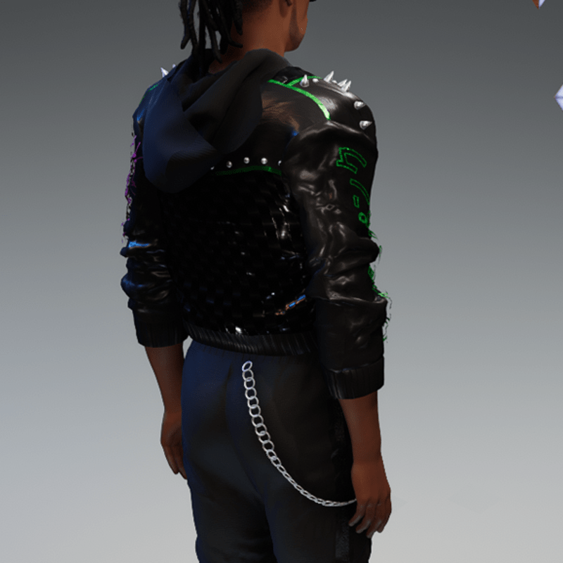 this leather jacket is inspired by the awesome "cyberpunk" game. It comes with a samurai print on the front and on one side as well as the word "cyber punk" in japanese on the other side and some rivets. Enjoy <3