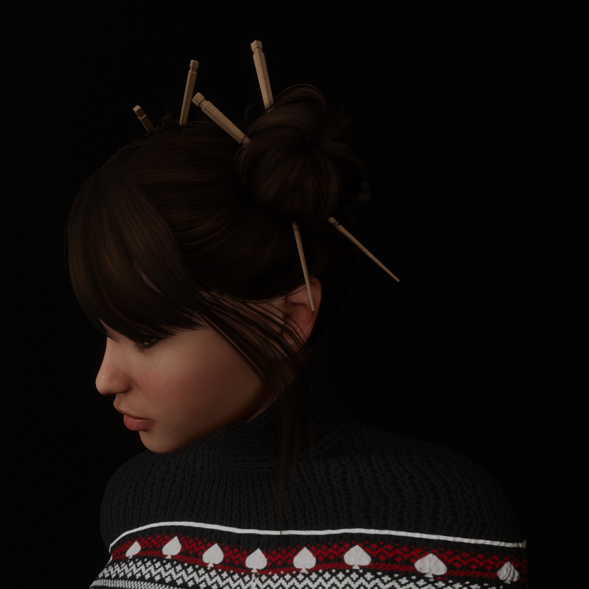 I made these chopsticks for the hair Double Bun hair by Truth, located in the world of weekly hair giveaway. Unrigged. You need to adjust slightly to buns. Has material maps. Simple and cute. Found in glasses slot. 100% made by me.