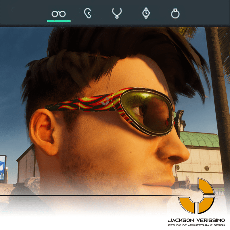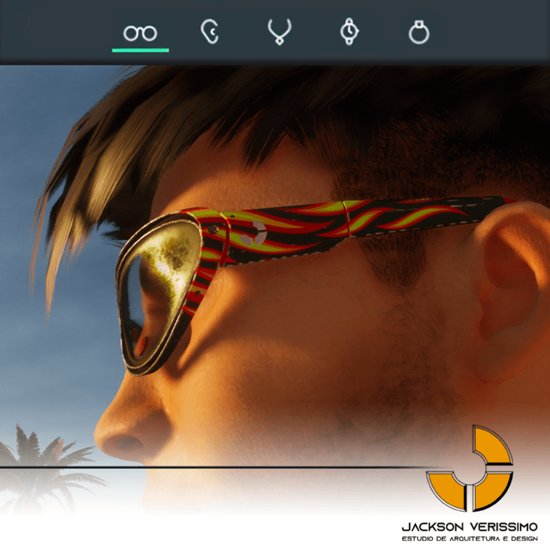 Special design for sunglasses of Aluminium. Original by JackVerissimo. Transparent and Metalic Lens. Frame of Aluminium with flames. Special PBR textures. Unisex. Match with all humaniods avatars. Sometimes you will need a easy adjustments to fit.