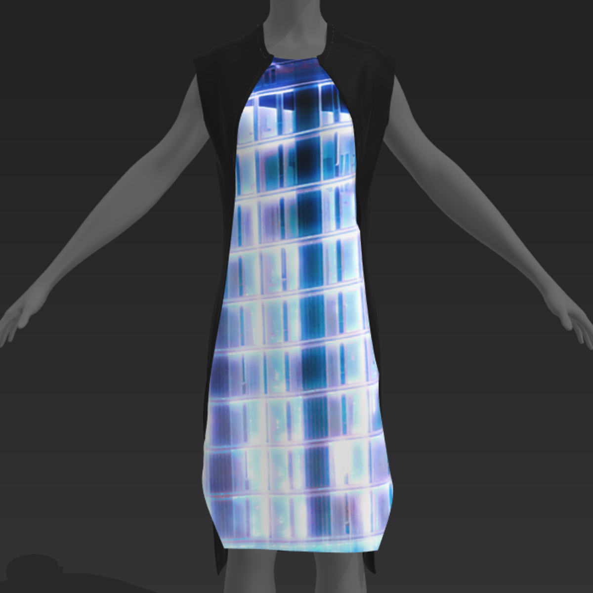Neoprene dress with futuristic glitch print. Made to fit avatar 2.0.