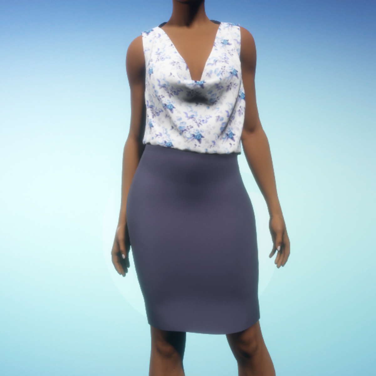 Elegant faux skirt and blouse ensemble. The blouse features a low front cowl neckline and pretty floral print while the skirt is made from classic herringbone fabric. The skirt and blouse cannot be worn separately. By Sweet Distractions