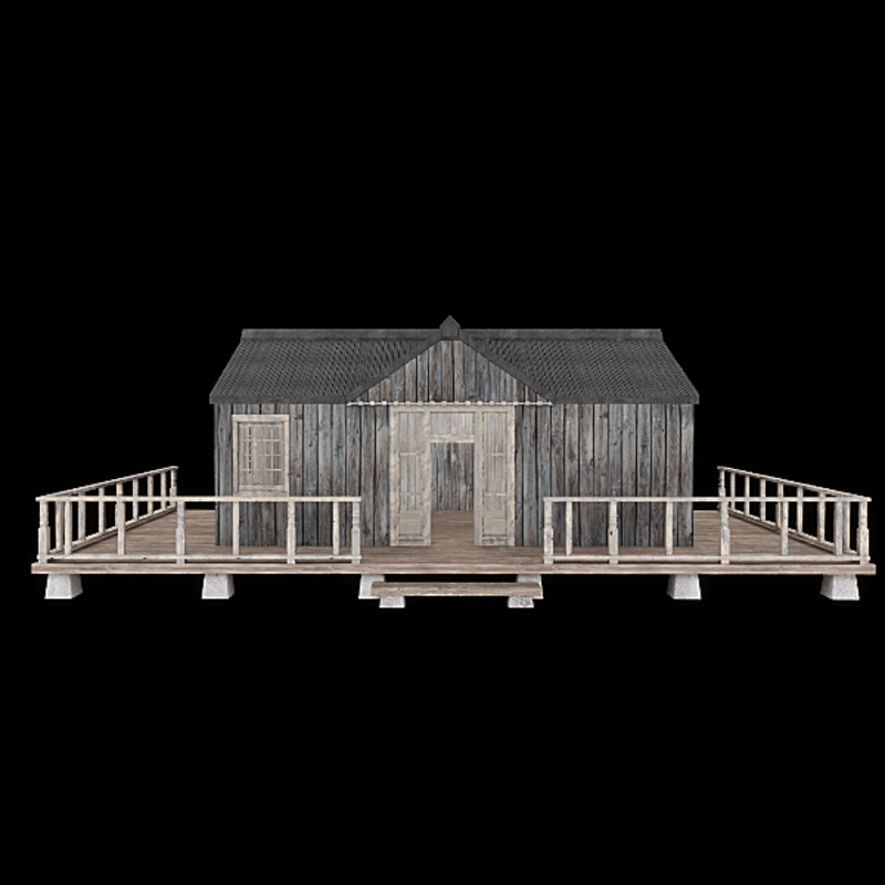 Spacious one room rustic home with wrap around porch, steps and cement pads. Optional coordinating door is here: https://store.sansar.com/listings/b4751469-1fab-45a8-b2d6-63f4c63c9c9f/country-victorian-door- The aqua and gray photo is one taken in the experience; the one in more natural tones is taken with no scene lighting. Colors will of course shift depending on your lighting. Many textures can be tinted or changed out depending on your needs. See inworld here: https://atlas.sansar.com/experiences/chicaeon/ranch-life Part of the Ranch Life set from ChiC buildings. Original mesh with Cycles baked textures. Normal map Custom collision mesh