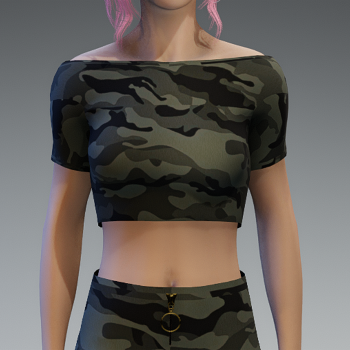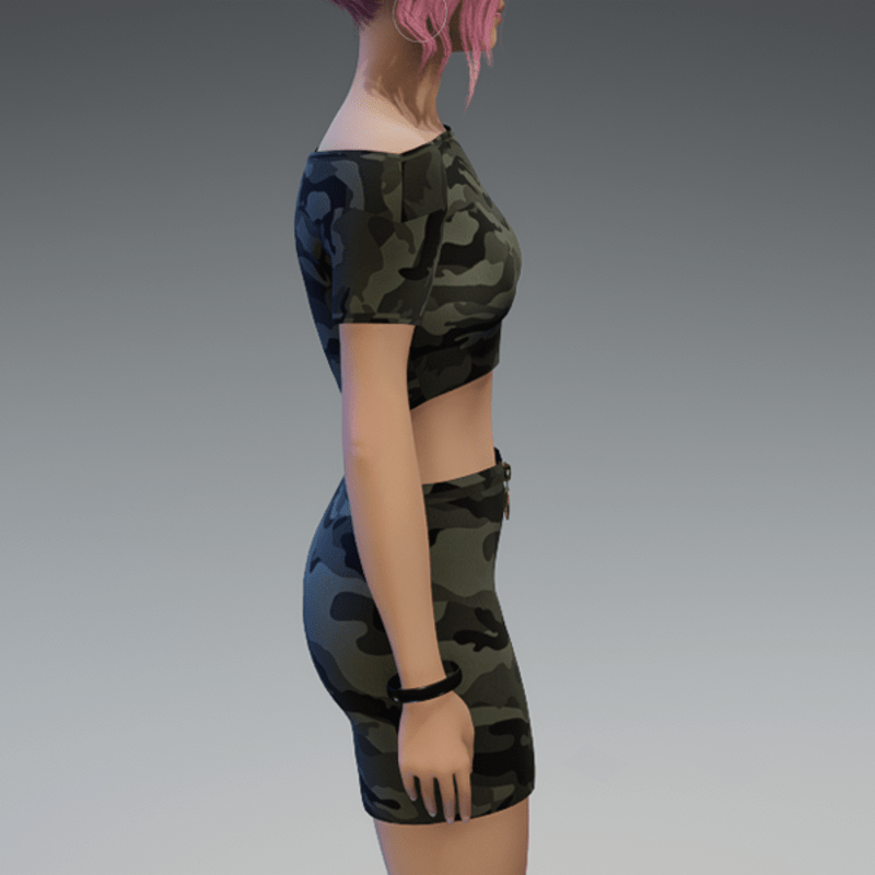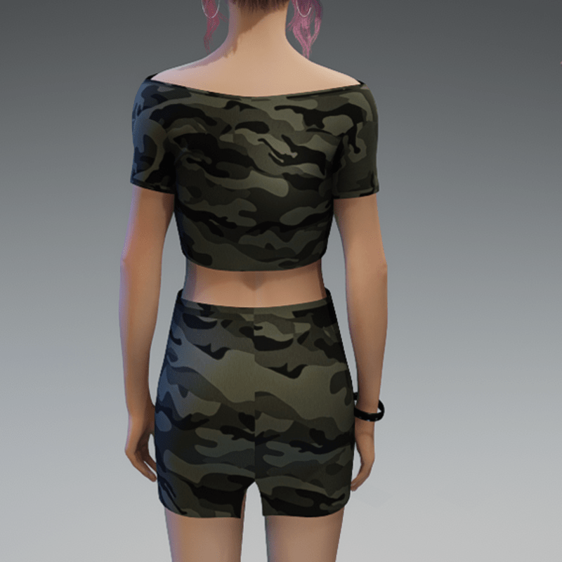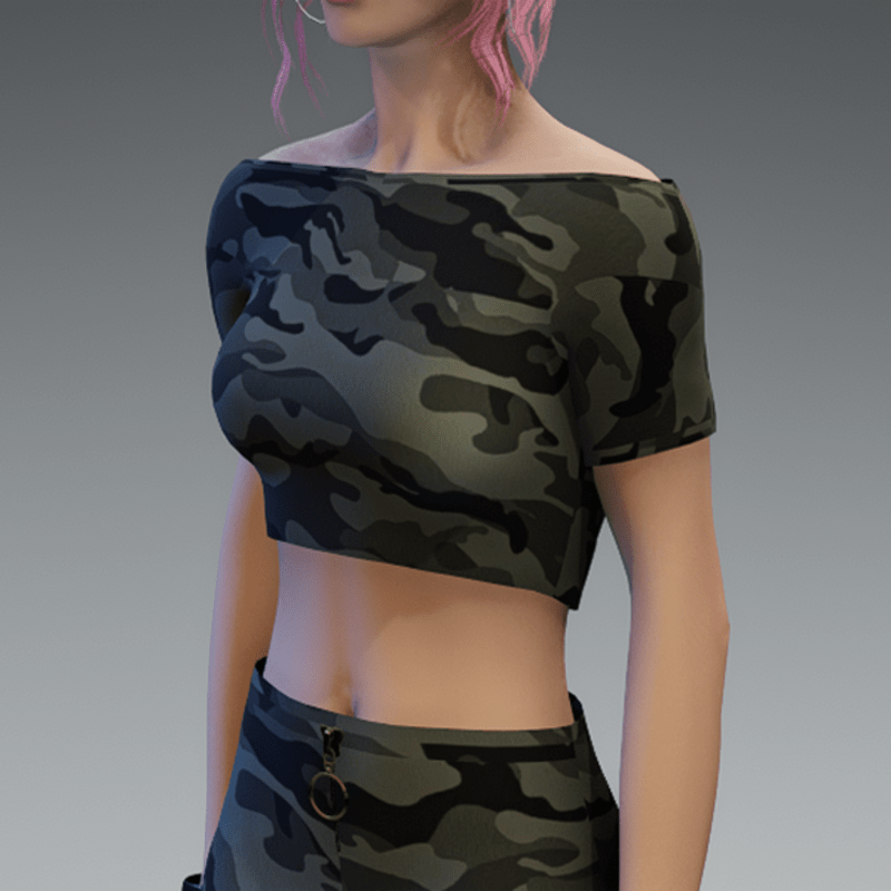 A basic crop top with another camouflage fabric. If you're not sure about how this one would look on your avatar, feel free to try my free version before you're going to buy this one. And if you're looking for the skirt i used in the pictures - you can find it in my store, too! Enjoy!