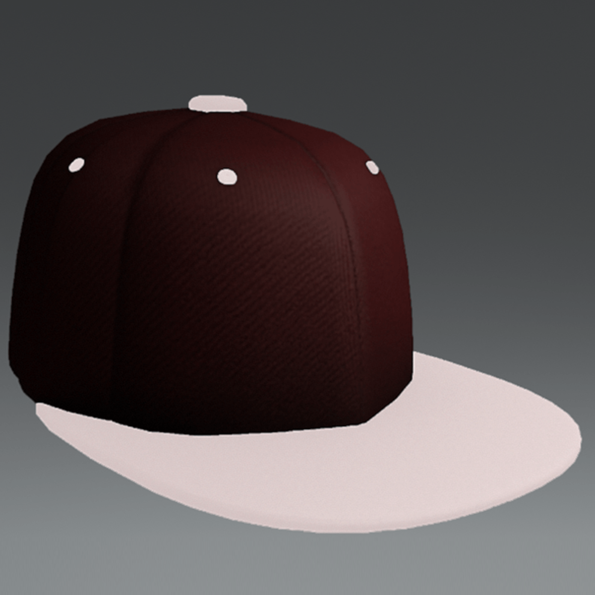 A marron and white high profile cap. Cap is adjustable. Glowing cap works in dark areas. Cap fitted females, but can be adjusted for males.
