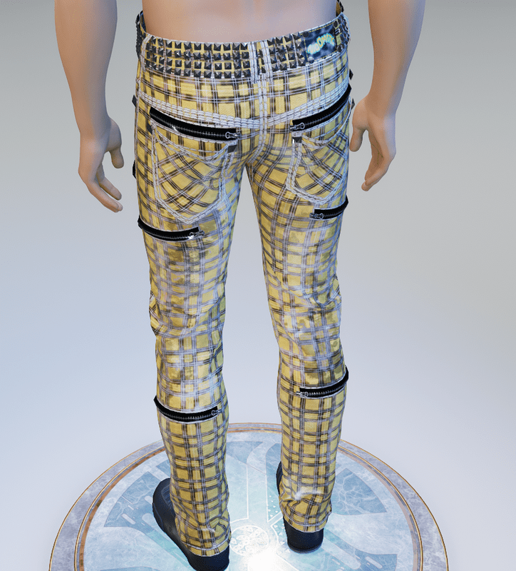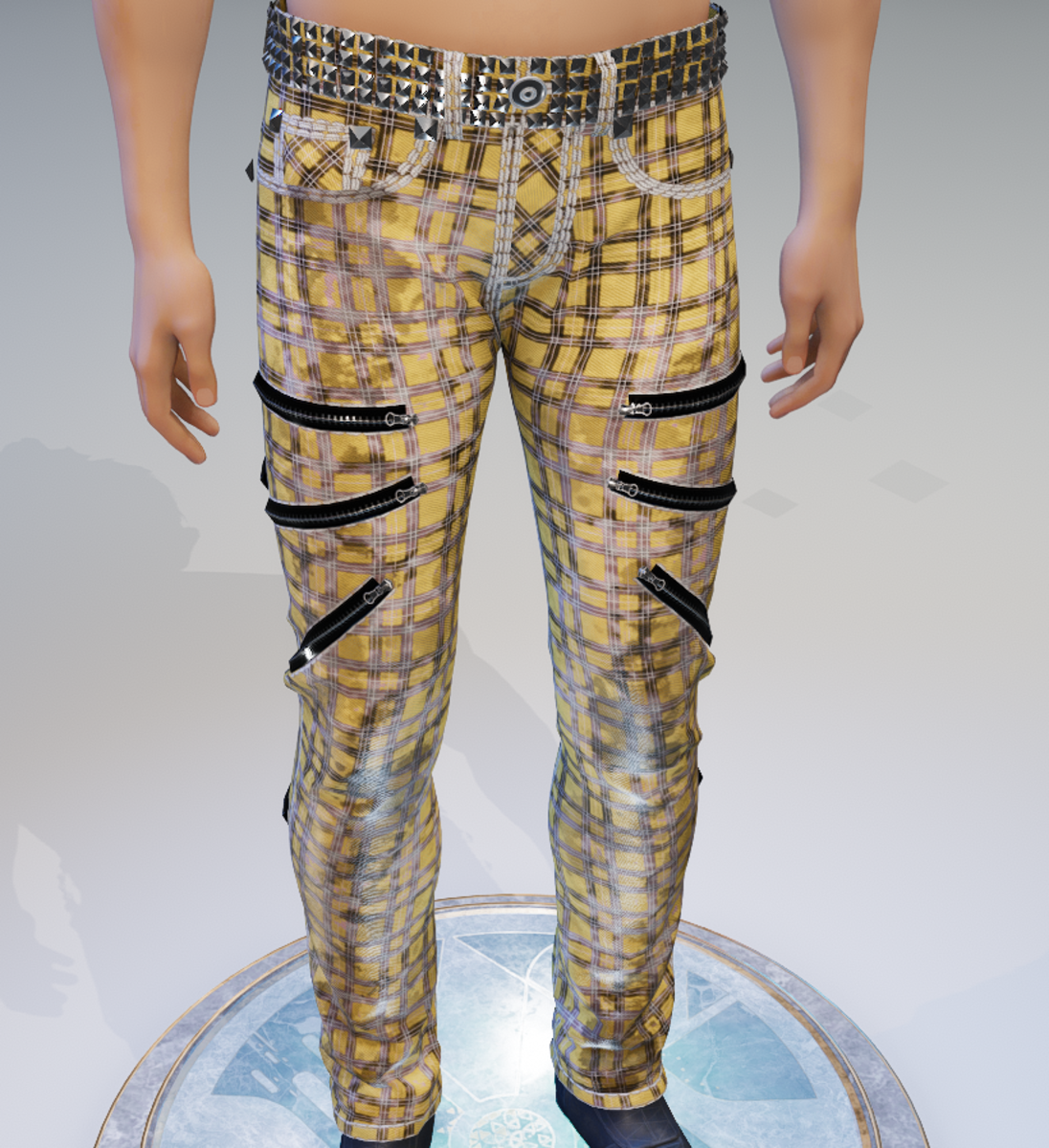 Don't like it so pristine.. Like to roll around'n get some dirt on ya.. Get dirty with this Punk Rock Chaos Yellow Plaid Dirt-Bleached Jeans. Enjoy and have fun!