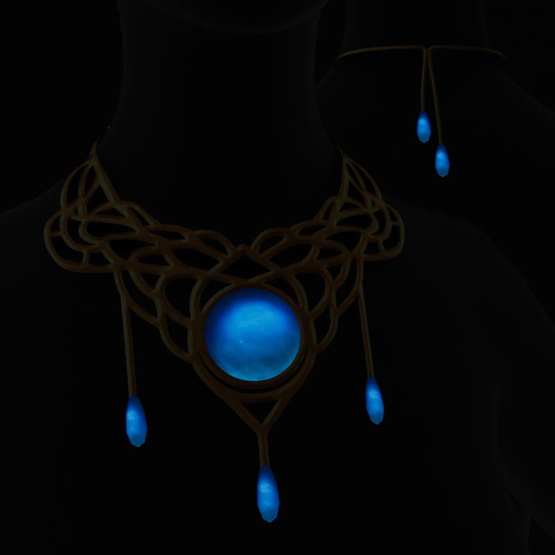A unique, elegant and luminous neck piece to adorn your avatar with. The crystals on this necklace literally glow. Fitted for the default female framed avatars, however with a small amount of re-sizing and transforming it can fit many kinds of avatars. If you do not see the Necklace immediately in your accessories tab, make sure to set the drop down box at the top to "Show all accessories" (See extra picture for example) Contact "TheNick-1981" through Sansar or Sansar discord if you need re-rigging, a custom design or if there is a problem etc.