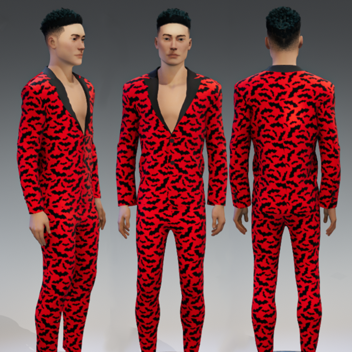 Suit Bats red male 2.0, additional free muscleshirt available in black or white