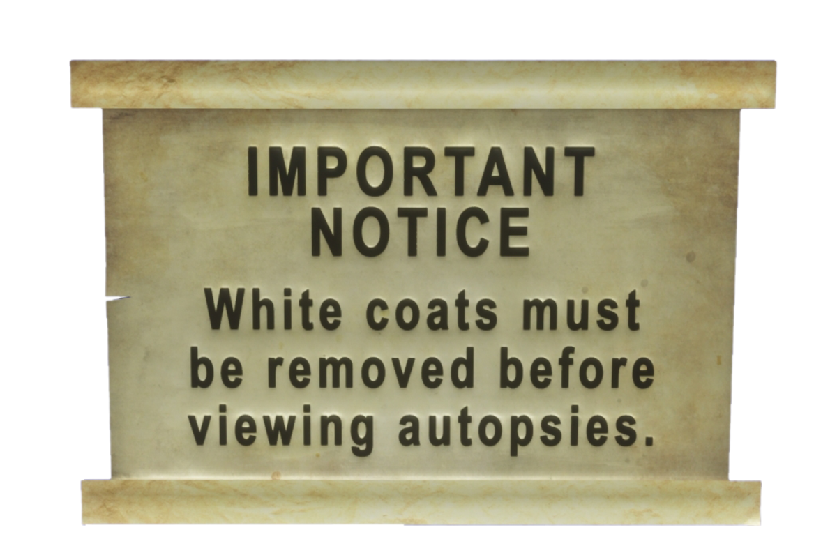 A morgue sign pertaining to viewing of autopsies. It can be see here: https://atlas.sansar.com/experiences/stupidmonkey/abandoned-morgue