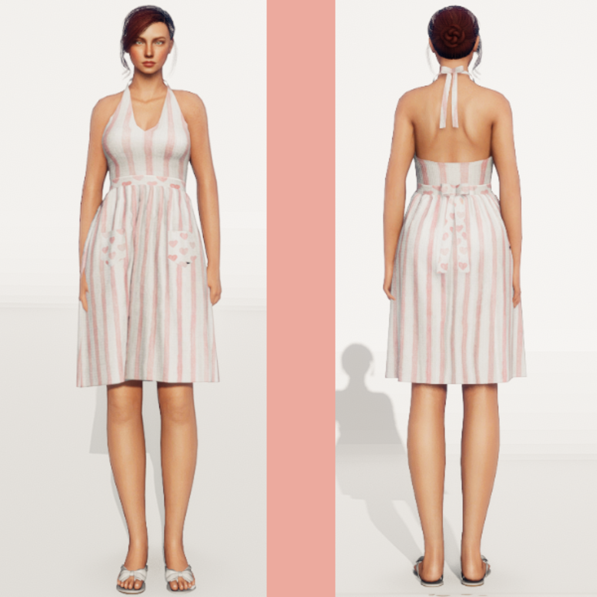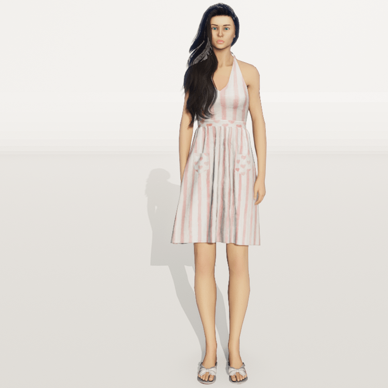Vintage Halter Top Dress Check out my store for more great fabric choices. Made in Marvelous Designer and can be adjusted to fit most avatars. Created on a custom avatar, slightly curvier than AV2.0, to allow for a better custom fit. May require transform and adjust tools. Pictured with Alina and AV2.0 Try the Free gift version to assure fit, located here: https://store.sansar.com/listings/d779fc58-3d59-42fe-ac1d-335209c2ffb0/st-valentines-day-gift-2020-nannas-attic---vintage-halter-dress----pattern-8 Visit my world here: https://atlas.sansar.com/experiences/lonaleelancaster/lona