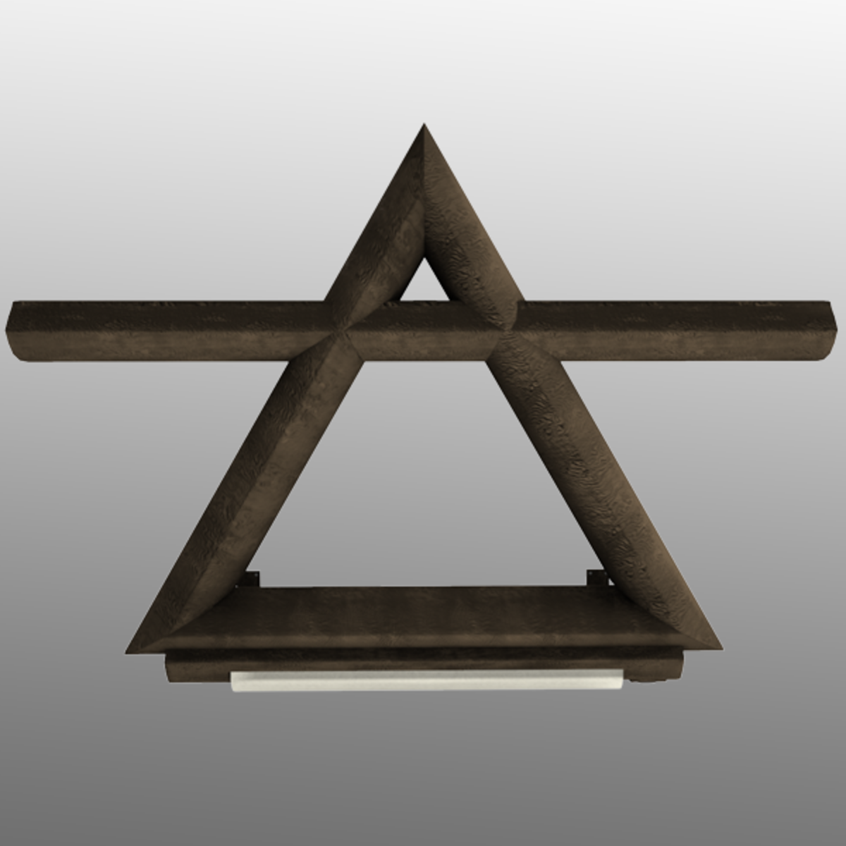 Decorations for the elemental journey. This wooden shelf was designed after the air symbol. Put in your meditative interactive space. Its glowing lamps will bring enlightenment in the dark, and wisdom in the day.