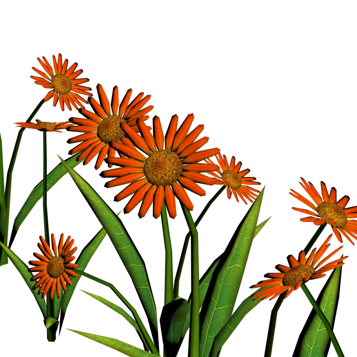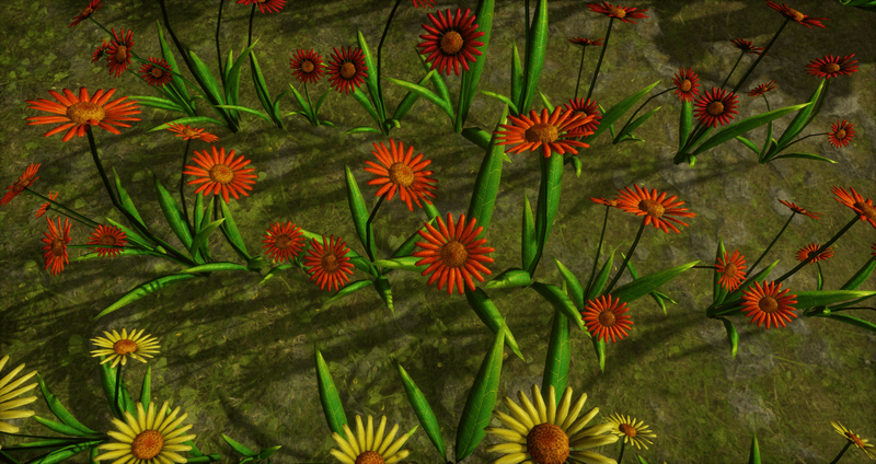 22 Colorful daisies in a straight line for pathways. Polygon count: 11920. There is no collision on this so you can walk through it. I have many colors. To see this flower in Atlas, please visit "LovedWarrior's Ground Plants: https://atlas.sansar.com/experiences/lovedwarrior/lovedwarrior-s-ground-plants" Please note that all my flowers are 100% detailed mesh meaning no flat planes with flower pictures pasted on them. Each petal, pollen, stalk and leaf is made by hand and placed by hand. I only make grass from planes with grass pics pasted on them. All the textures are also made by me. If you have any flower or plant requests, show me a picture of a flower and I will let you know if I can make it for you. Enjoy!