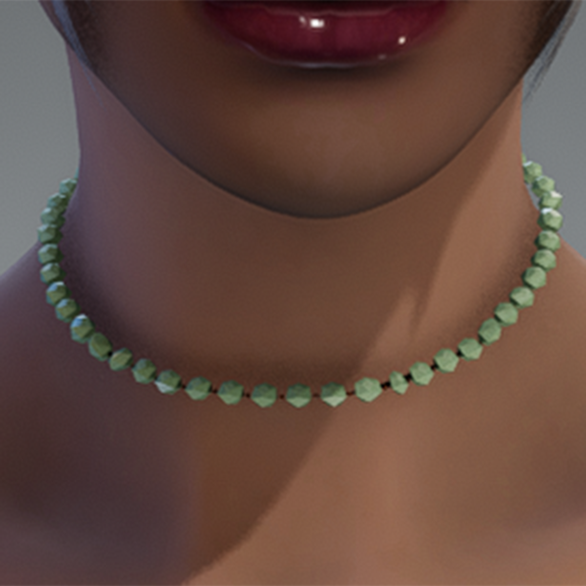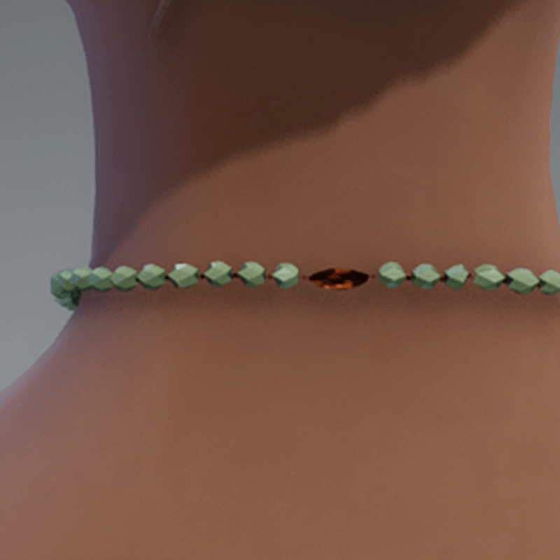 Light green jade beaded necklace Also want to mention that when in Sansar the middle part of the back clasp seams to not appear. Noticed this sometime after posting all of the necklaces online. I can't replace the products unfortunately but plan to create more similar necklace designs in the future without this issue. In the meantime I still think they look pretty good and the clasp issue isn't that noticeable at least in my opinion.