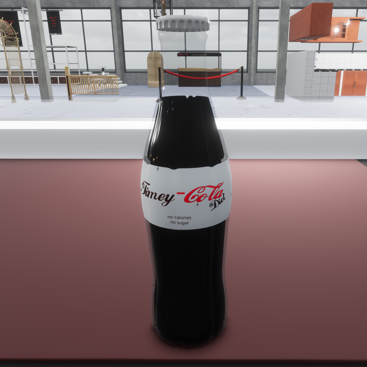 Fill your drinks fridge with some Timey Cola Diet so refreshing you will think you wet your self!! To see this in world visit my store https://atlas.sansar.com/experiences/timeymaster-3376/timey-master-s-store