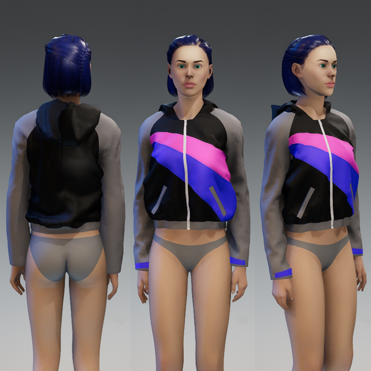 Hooded Sports Jacket that is Zipped up, made in Marvelous Designer