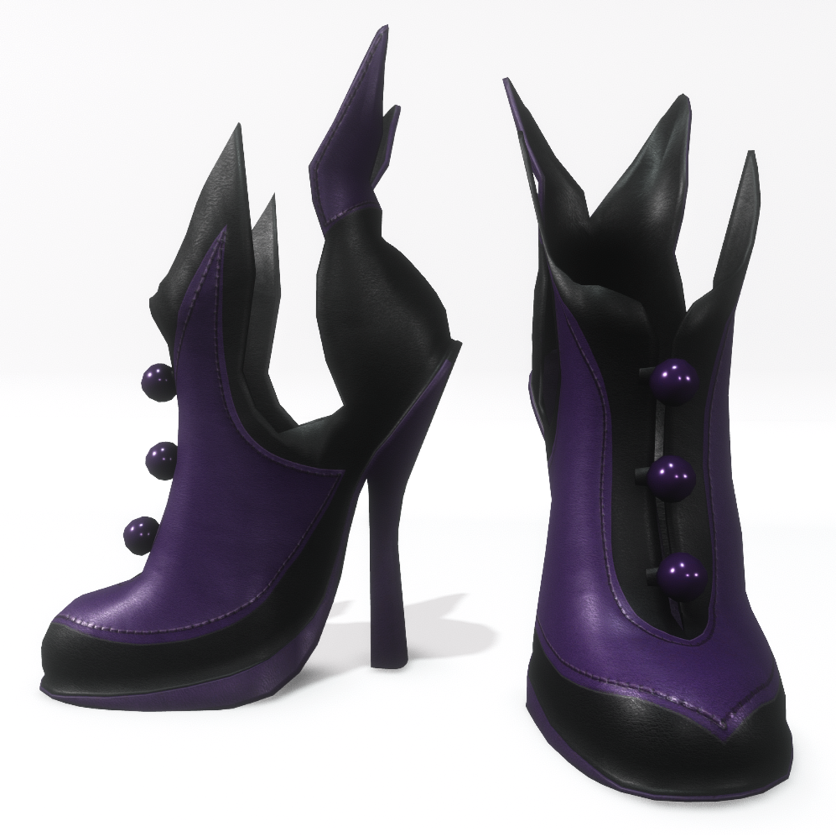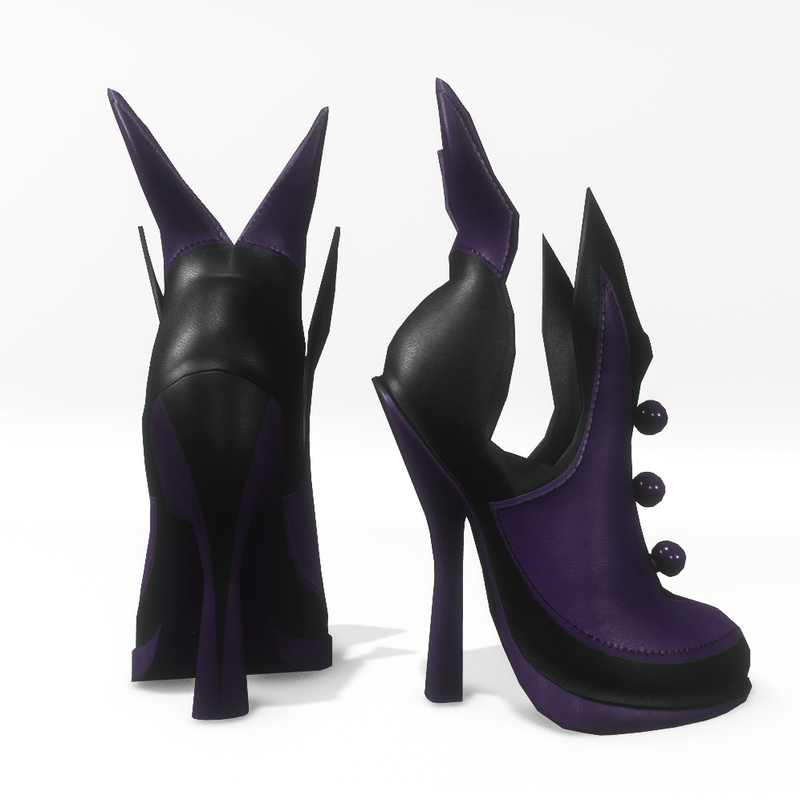 A unique pair of high heel shoes in black and purple colour with leather "wings" and pearl buttons. Ideal for the Halloween, costume parties or an eccentric appearance. Before purchasing get the free demo to check fit and style here: https://store.sansar.com/listings/c10db454-03fd-48fe-80c1-0f2f3fc04b1c/halloween-witch-shoes-for-alina-daisy-and-niccy-avatar---demo