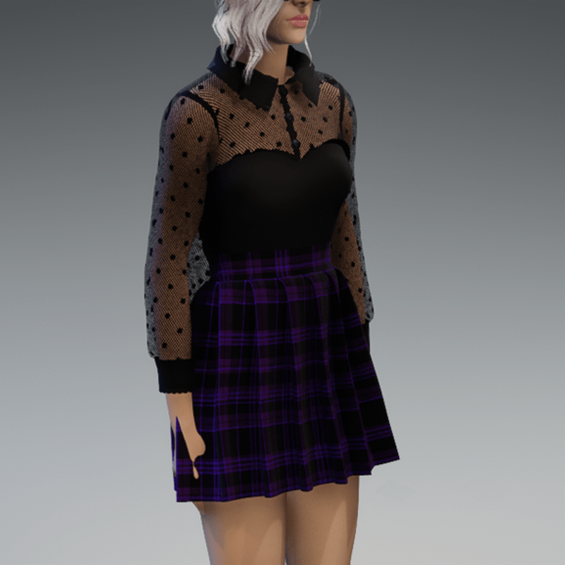 - Elegant Blouse & Schoolgirl Skirt Outfit in Checkered Purple