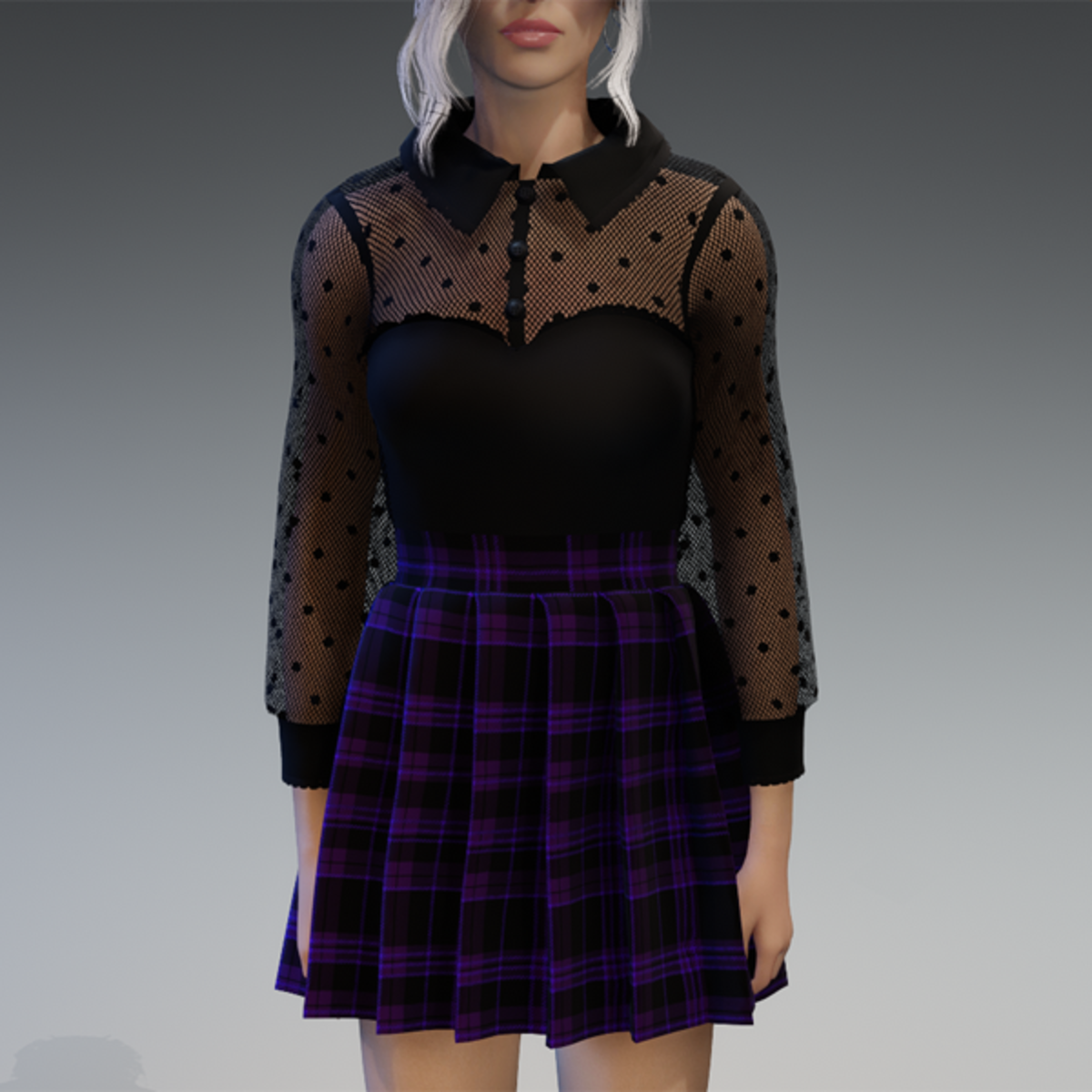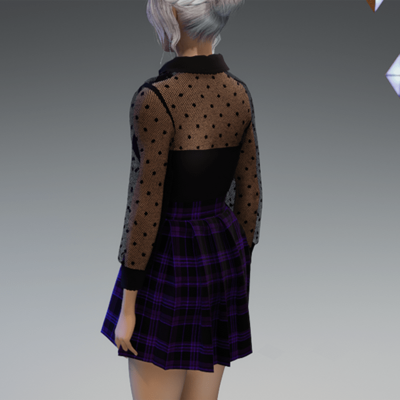 This cute and elegant outfit comes with a transparent dotted blouse top and a schoolgirl-styla skirt. Enjoy! <3