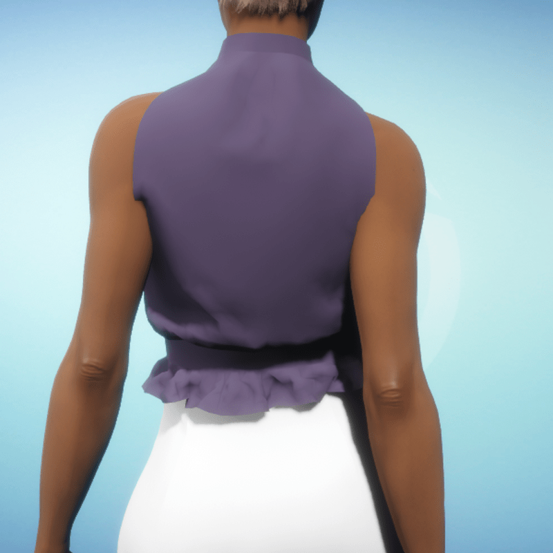 Elegant sleeveless blouse with a high neck and waist ruffle. By Sweet Distractions