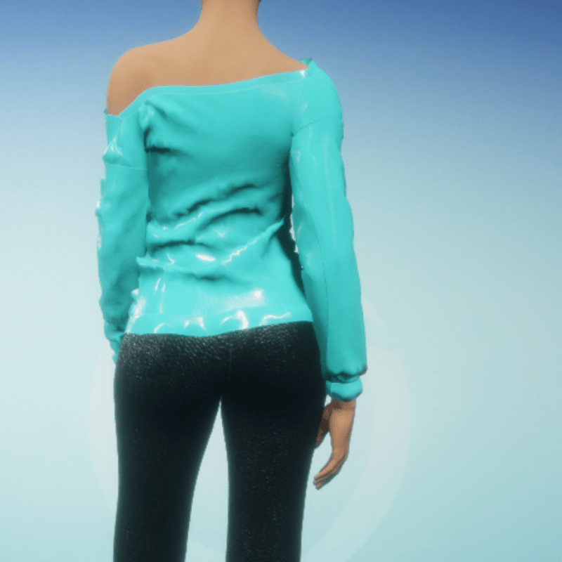 This is the teal version of the off the one shoulder lips kissing sweat shirt.