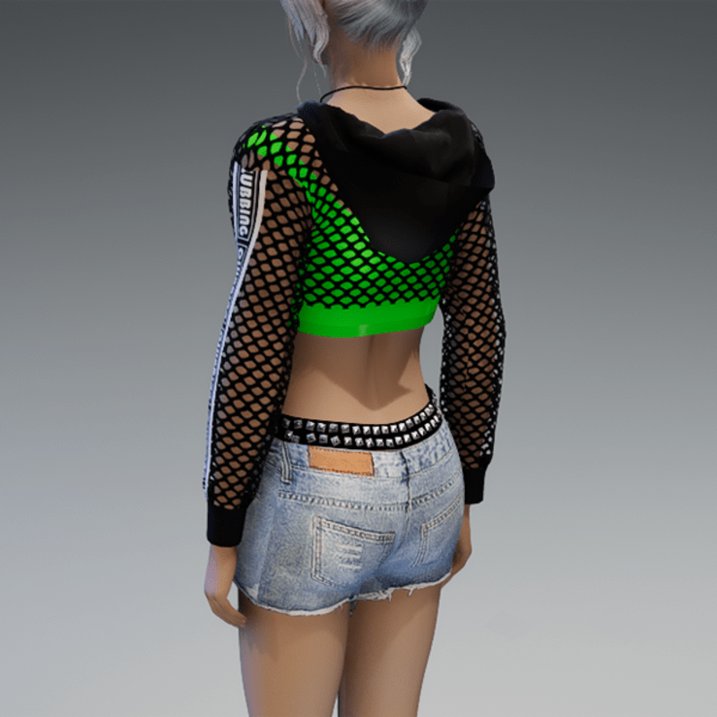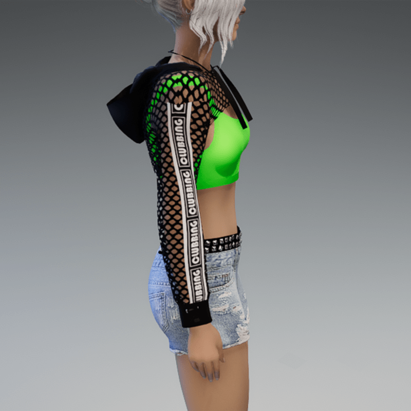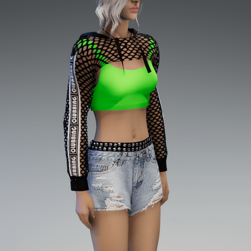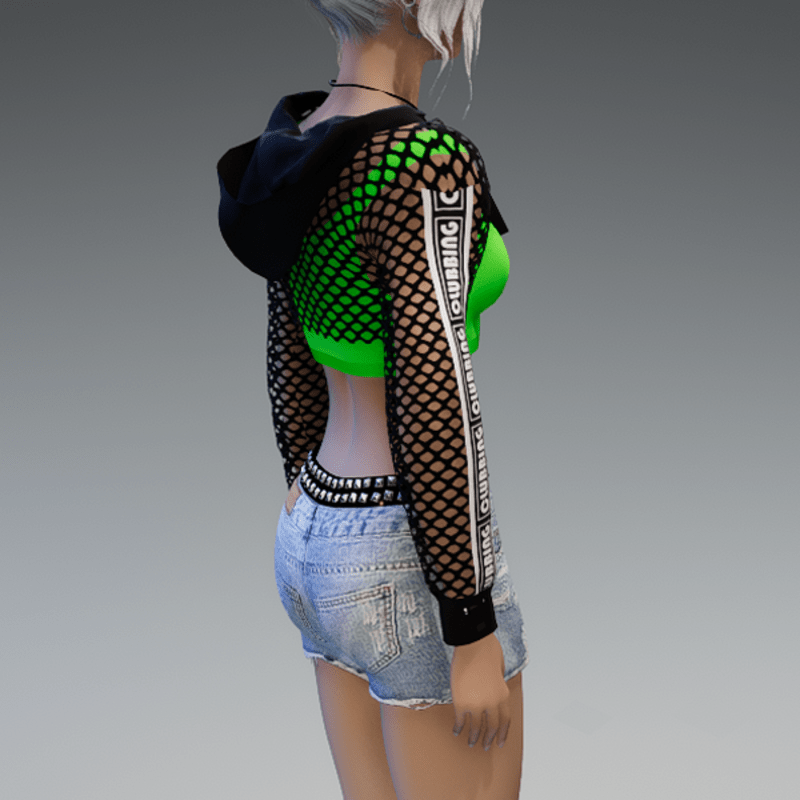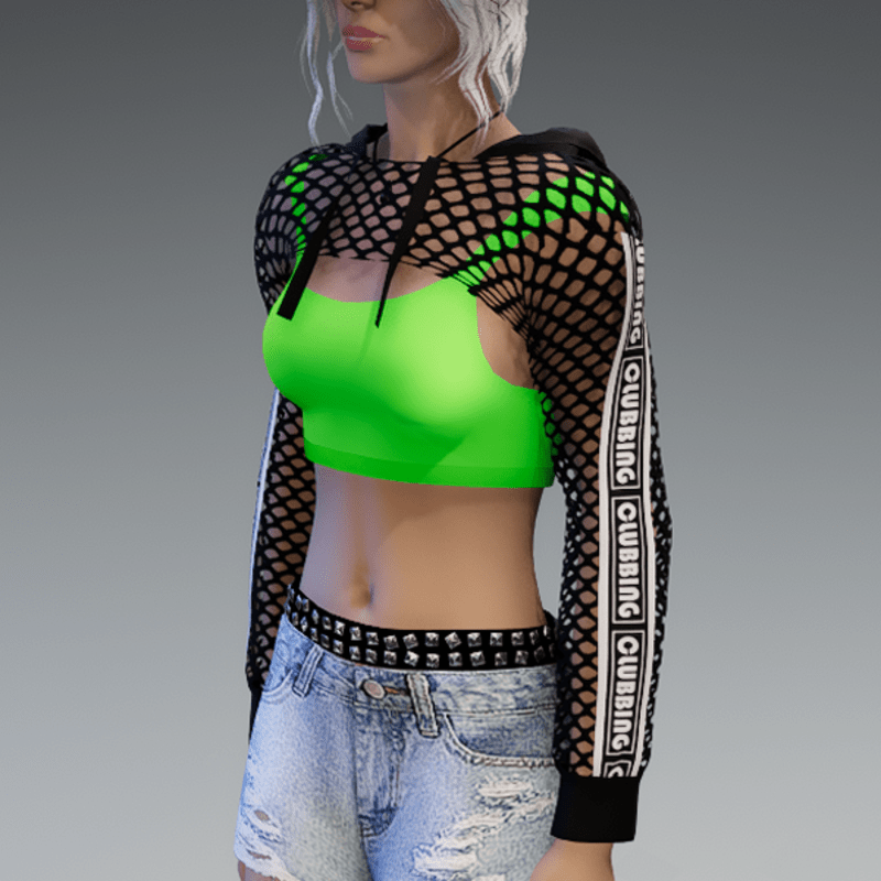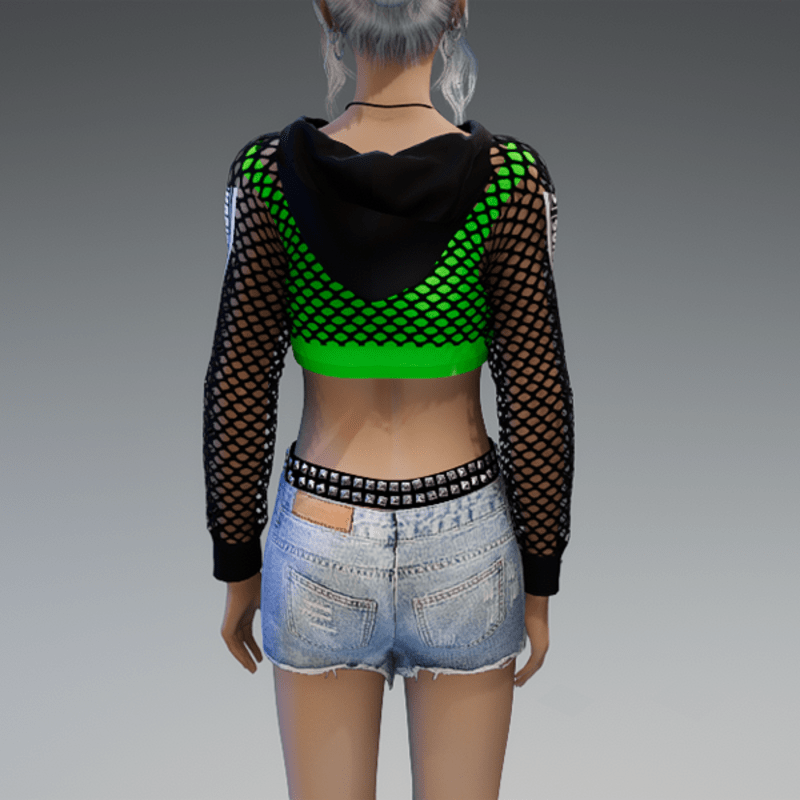 Mesh Hoodie + Top Black & Green Clubbing