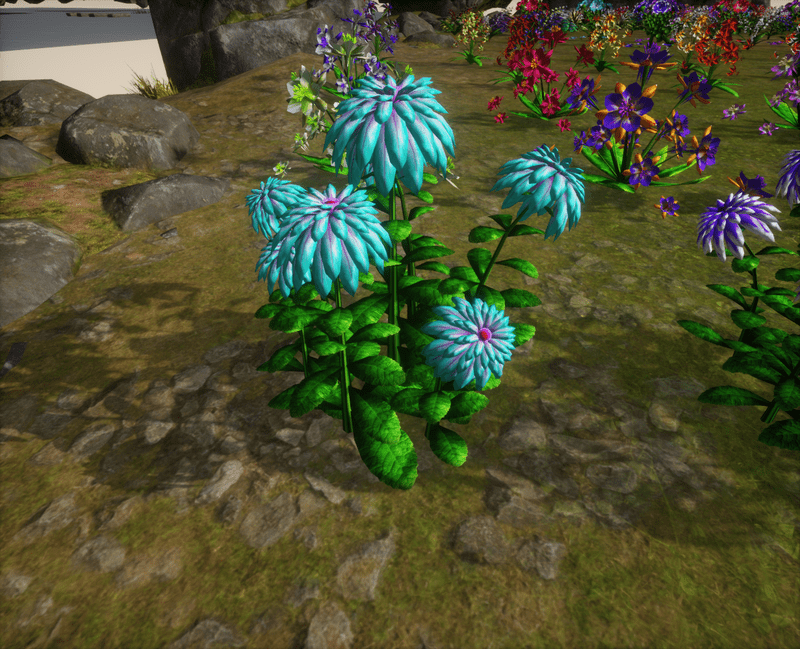 A group of 7 dahlia plants for your lovely lands and gardens. There is no collision on this mesh so you can walk through it. I have many colors. Please note that all my flowers are 100% detailed mesh. Each petal, pollen, stalk and leaf is made by hand and placed by hand. All the textures are also made by me. Enjoy!