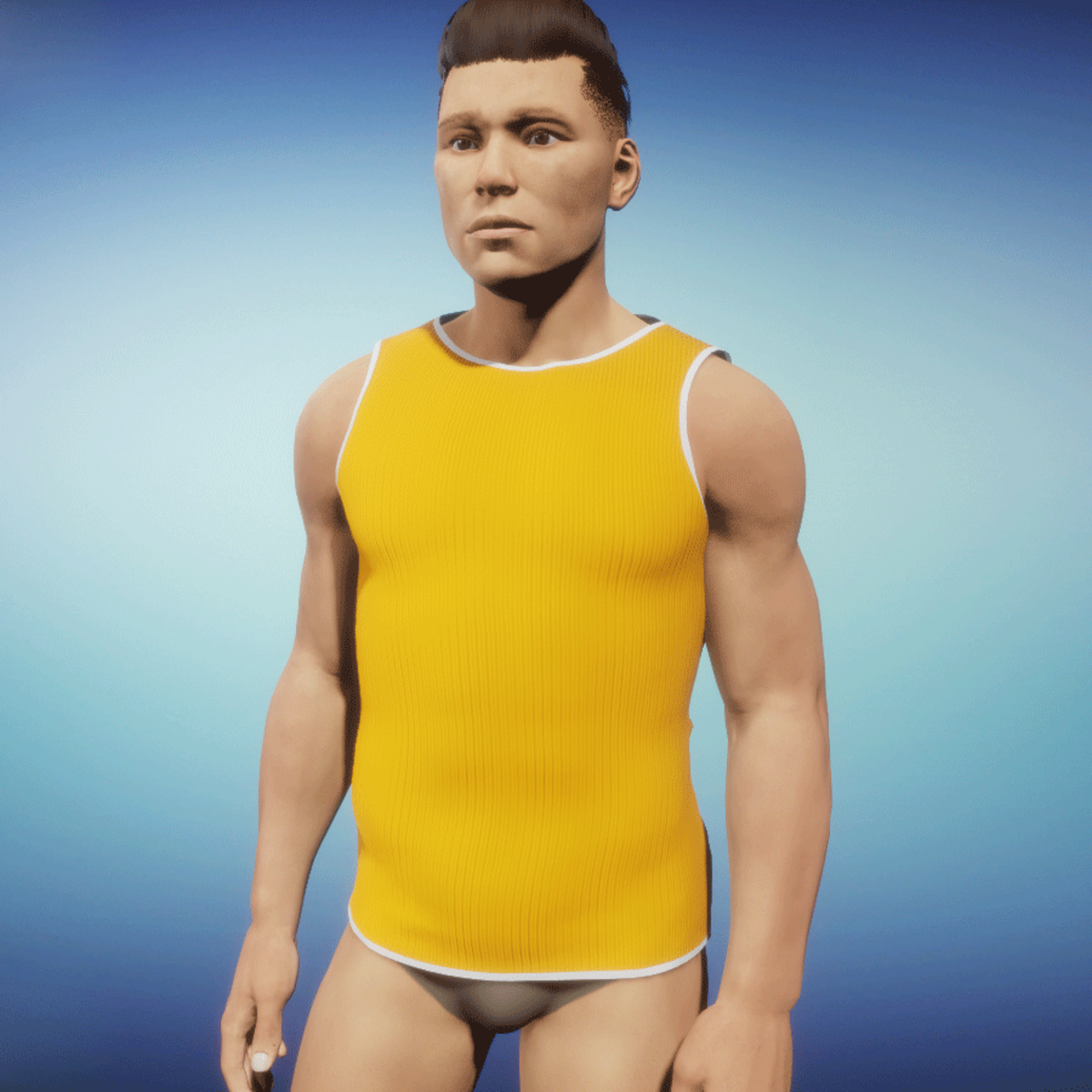 Sleeveless cotton top! Fitting on male Avatar. Please simulate the clothes before wearing to adjust it optimally.