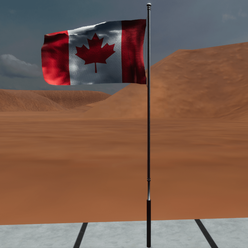 Animated flag of Canada waving in the wind. It is placed on a 4 meter pole. All permissions enabled except meterial flag. Available to view here: https://atlas.sansar.com/experiences/fernandop/full-experience-in-sales-for-exhibitions-and-events Don't forget to rate the product.
