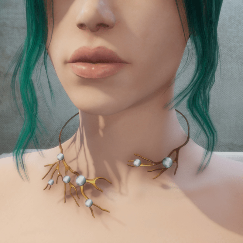 Bare Tree Choker wPearls Gold-White