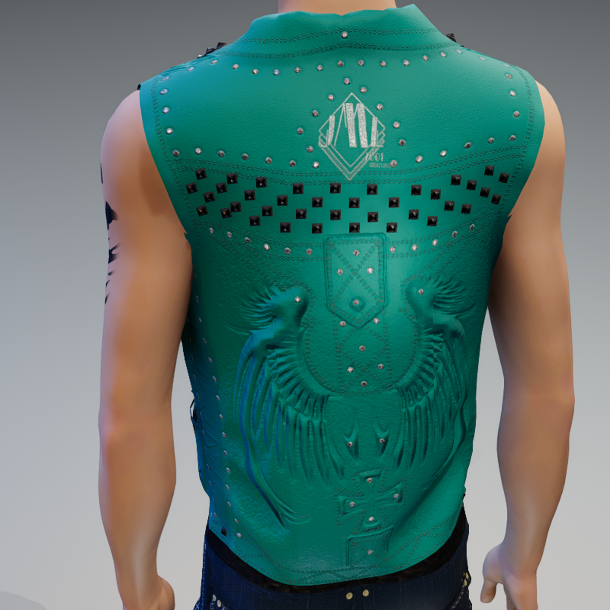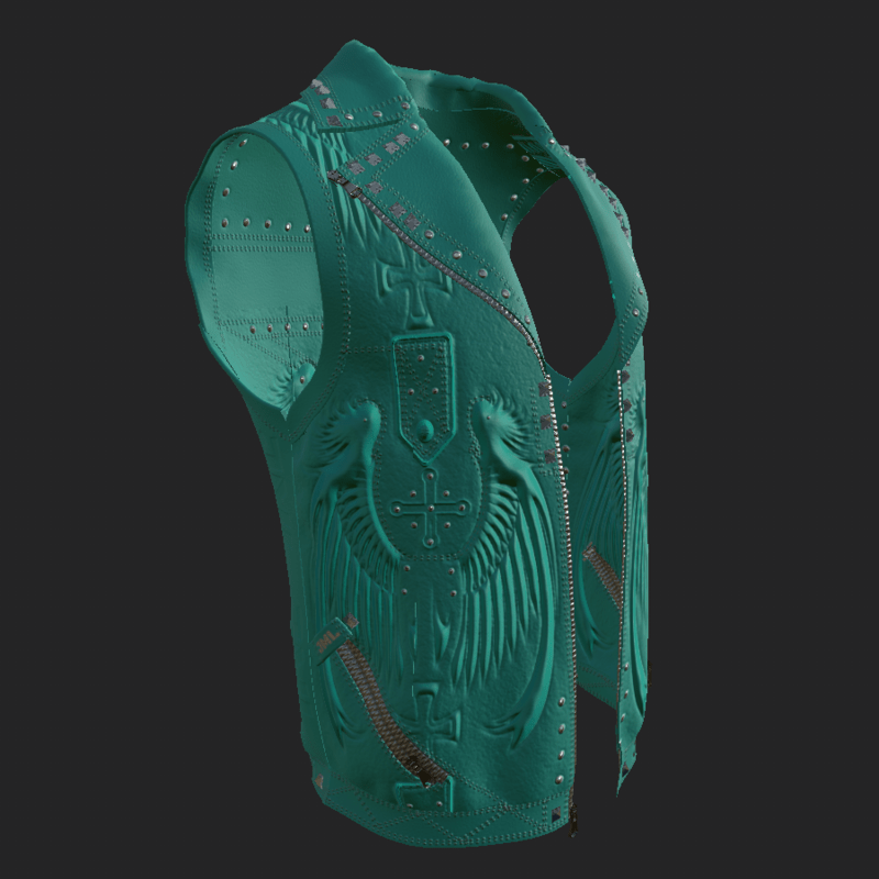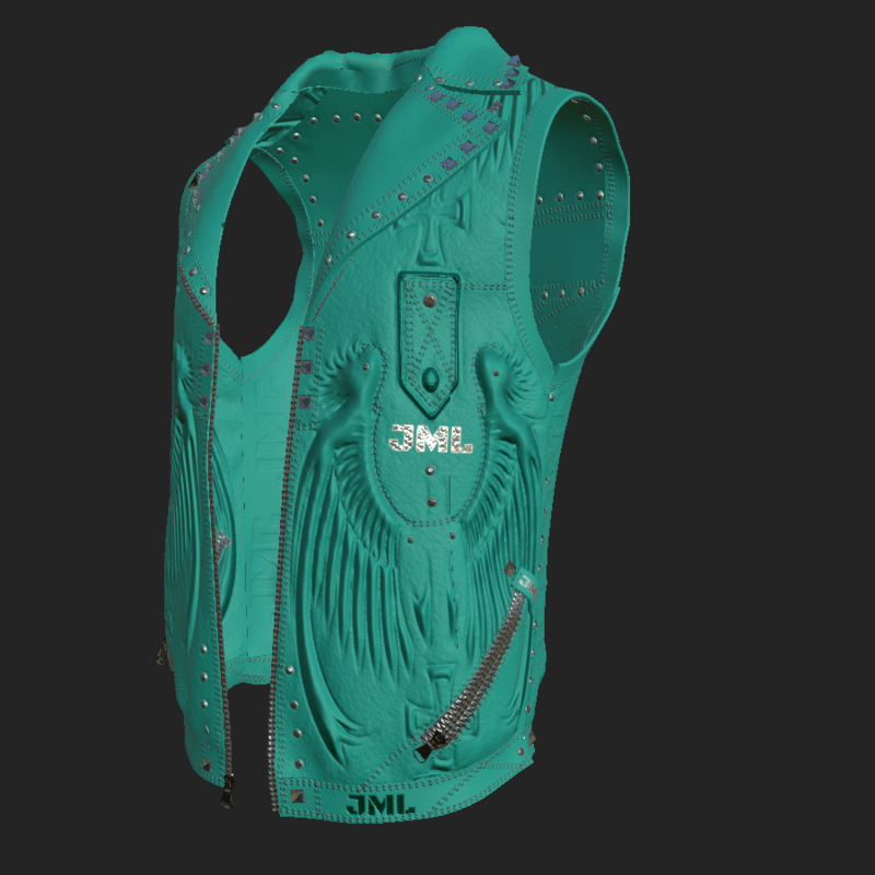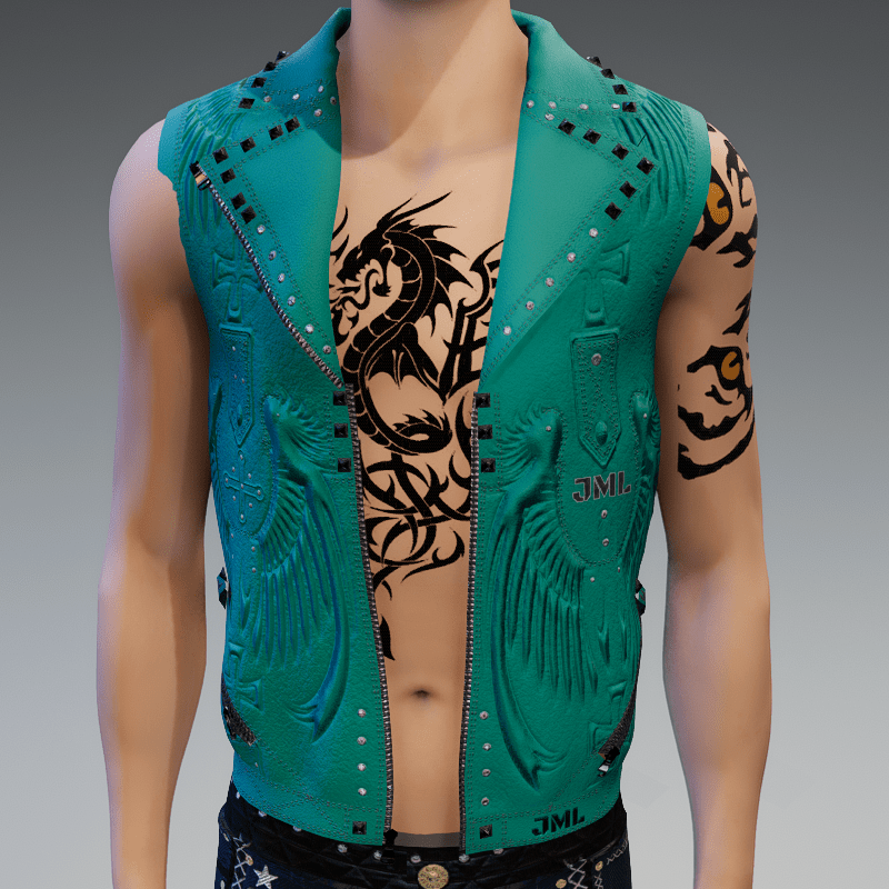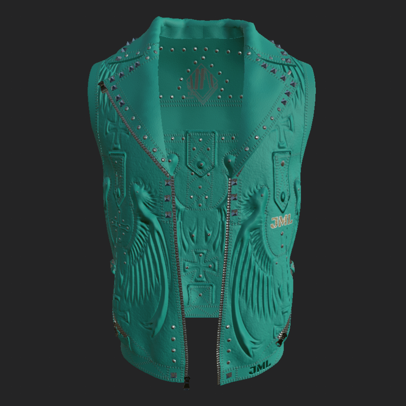 LEATHER VEST_ CYAN