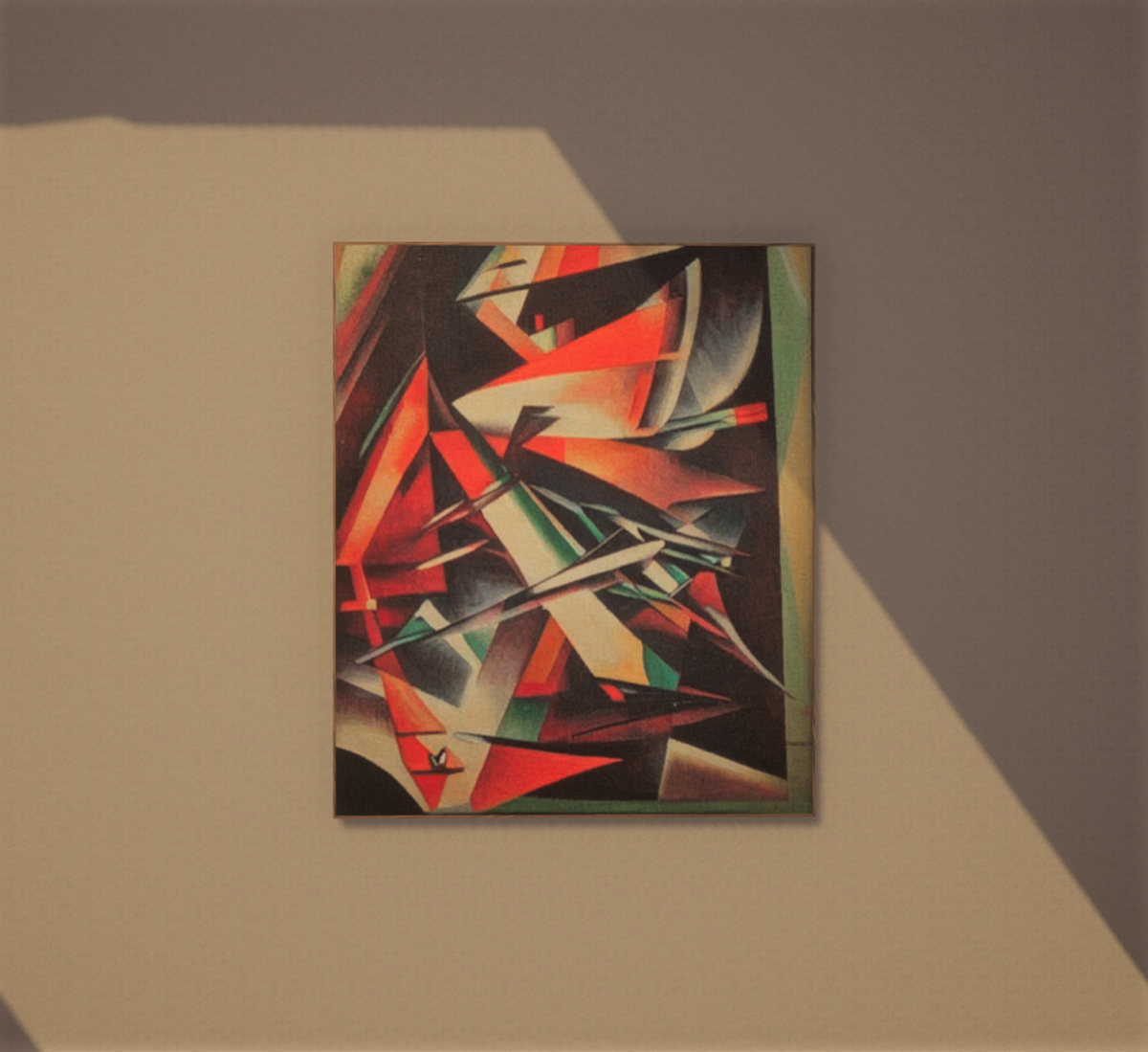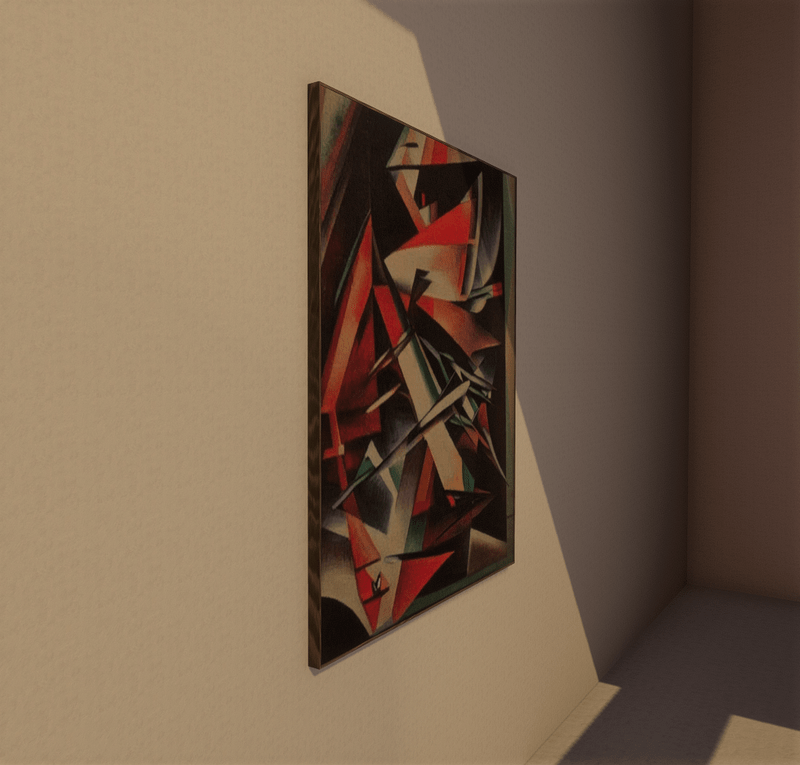 Early 20th century Futurist style painting in wooden frame See here: https://atlas.sansar.com/experiences/captcha-2893/private-gallery