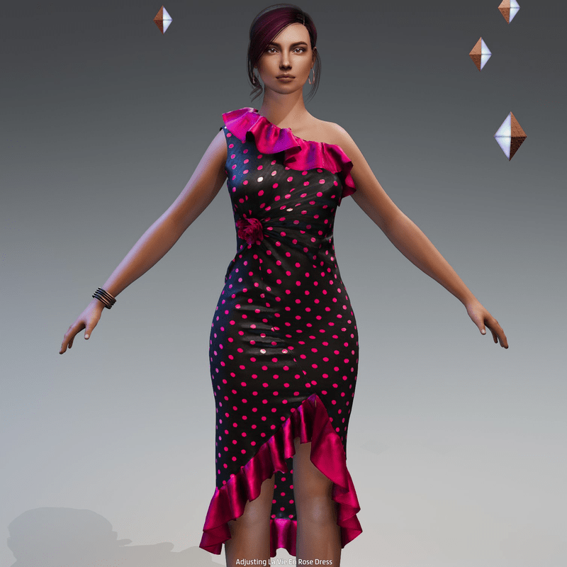 Design fits most female avatars, only needs a bit of simulation but skinny avatars might have a loose fit though.
