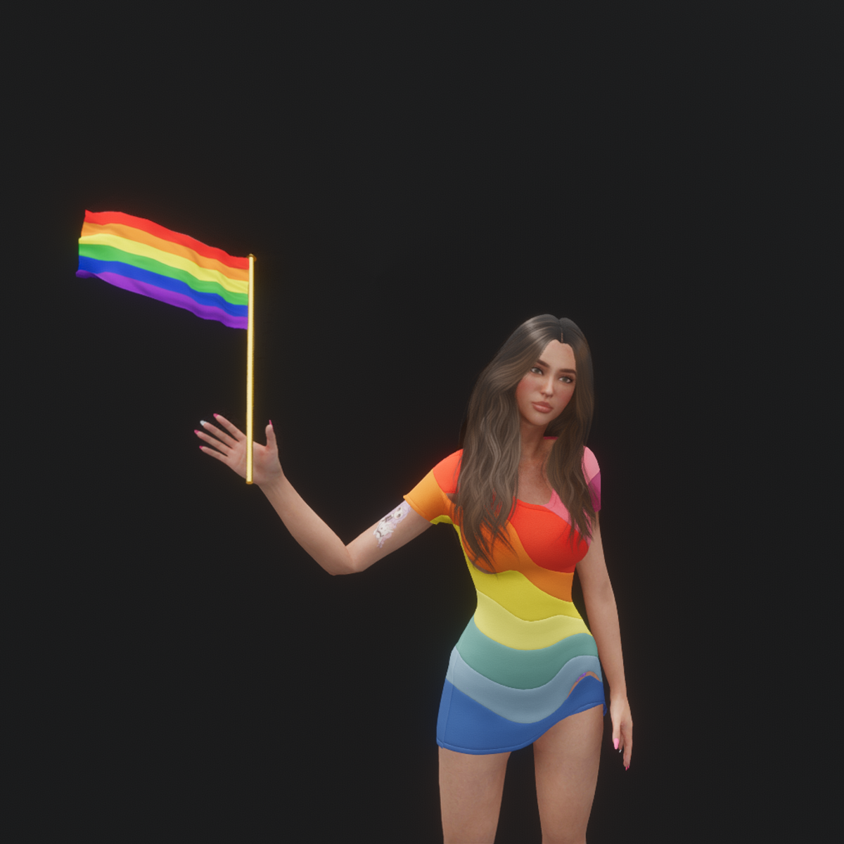 DO NOT GET IF YOUR GOING TO RATE IT LOW! I DID NOT MAKE THIS SO PEOPLE CAN BE A-HOLES. I AM A HARD WORKING CREATOR AND YOUR RUINING MY REPUTATION. THERE IS NOTHING WRONG WITH THIS FLAG. Realistic pride flag, made in blender. Goes in ring slot in accessories. If you want a custom flag let me know. IF YOU WANT A CUSTOM ONE IT WILL BE ABOUT 5-10 SANSARS.