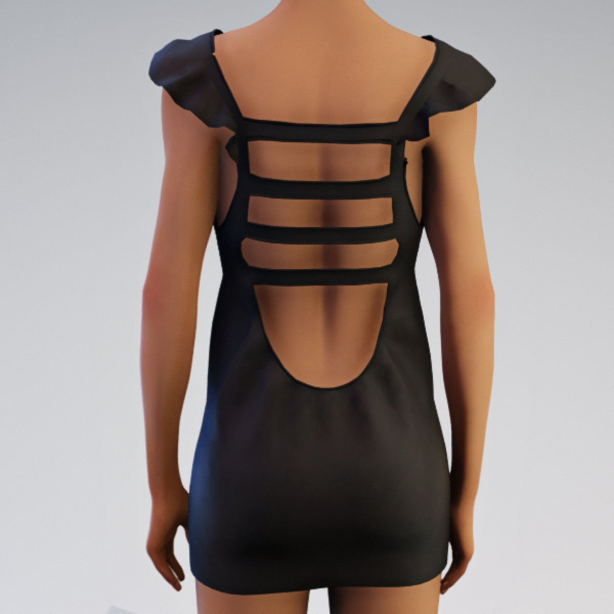 Lots of back interest, piping and ruffled cap sleeves makes for a fun club dress. Made for Avatar 2.0, this will fit Hellen (and likely other curvy gals) with some hand adjusting. See grayscale screenshot. PLEASE TRY THE DEMO.