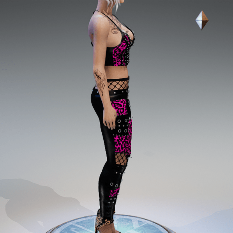 my leather pants for some rock'n'metal vibes. this one comes with some pink leo applications. enjoy!
