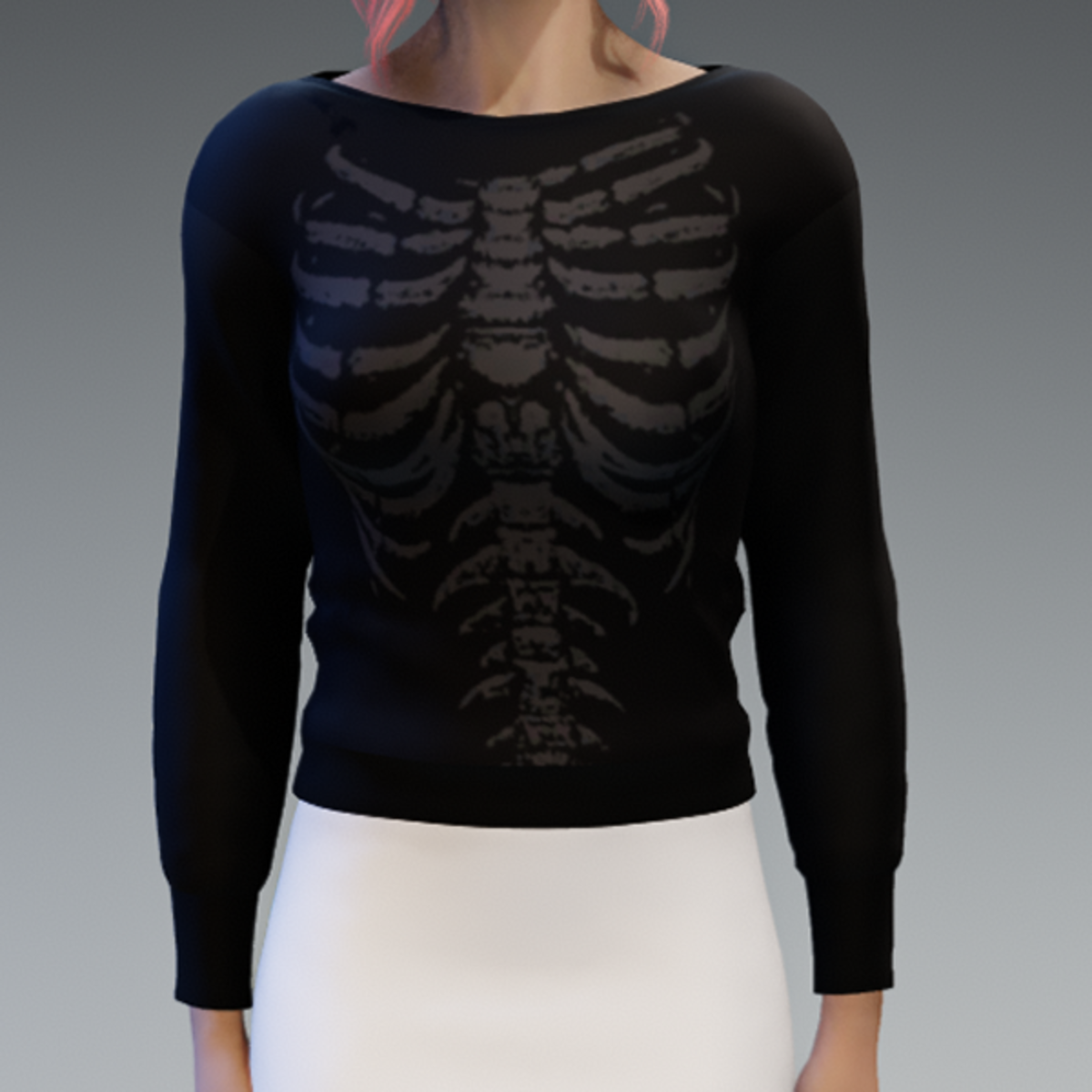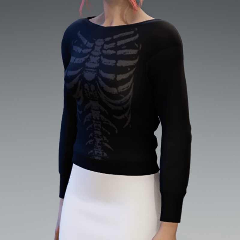 Here comes my basic Pullover in black with the skeleton print in gray! If you like the skirt showing in the images - look for my "White Mini Skirt". Enjoy!