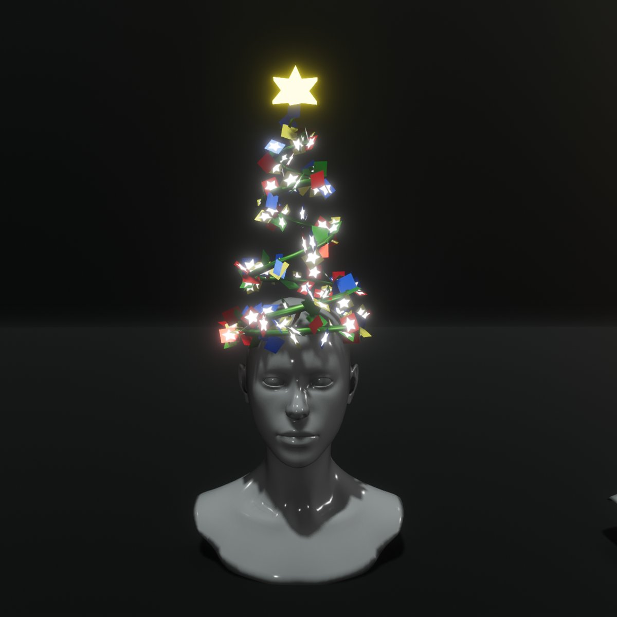 A spiral Christmas tree hat for the female avatar, with a bright star on top and little stars lighting effect, in multi colors.