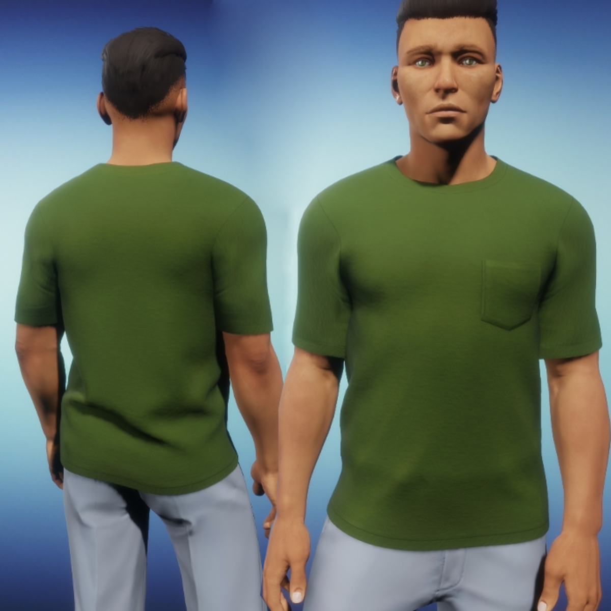 Please be sure to hit the simulate button in the lookbook when wearing any clothing made in Marvelous Designer. This much improves the fit as well as gives you the chance to push the fabric around to your liking. It is advised to not wear hair until you have completed the simulate process.