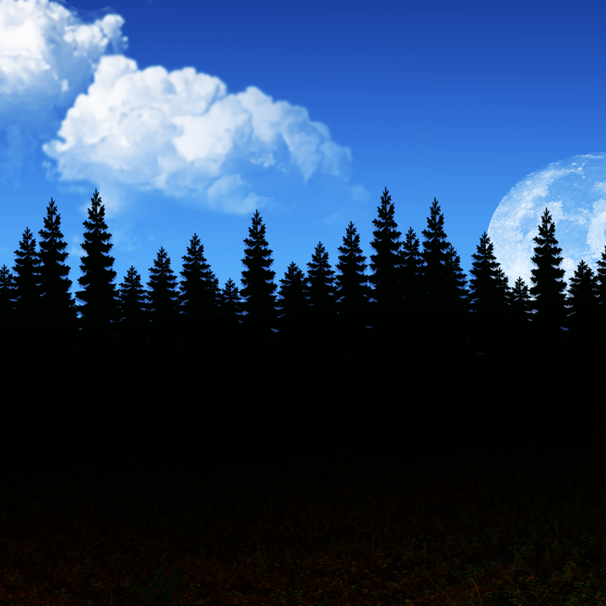 Dark forest valley skybox backdrop on a lightly clouded blue sky and full moon.. enjoy!