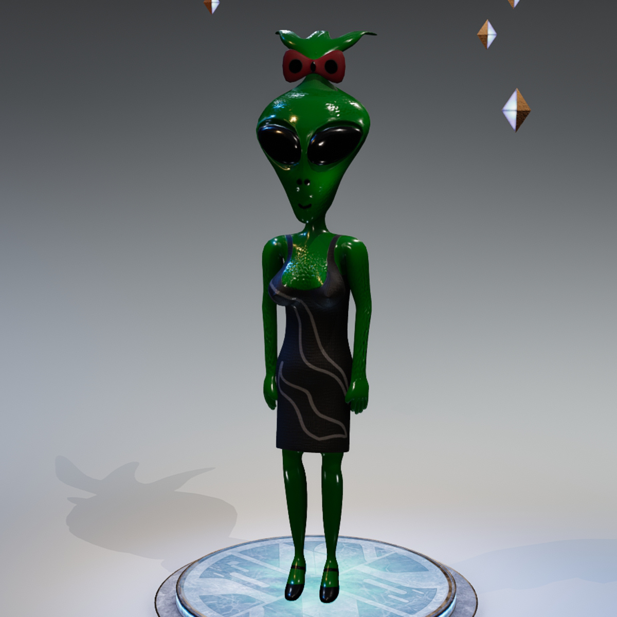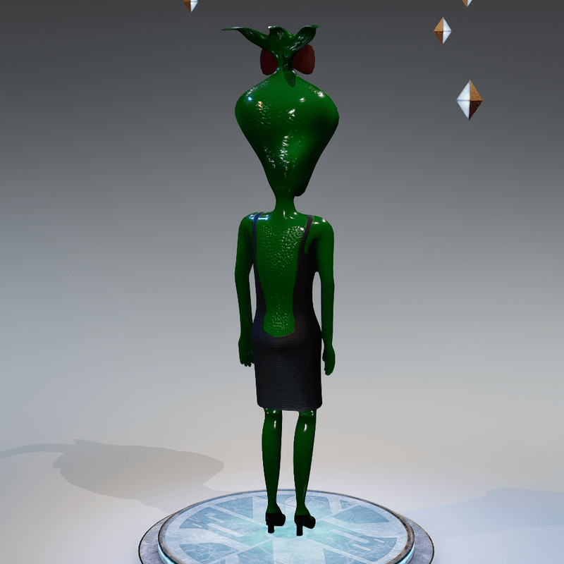 Cartoon alien woman. Avatar with attached bones. Tested only in desktop mode. You can find this avatar in the "Avatar" tab located in the Lookbook.