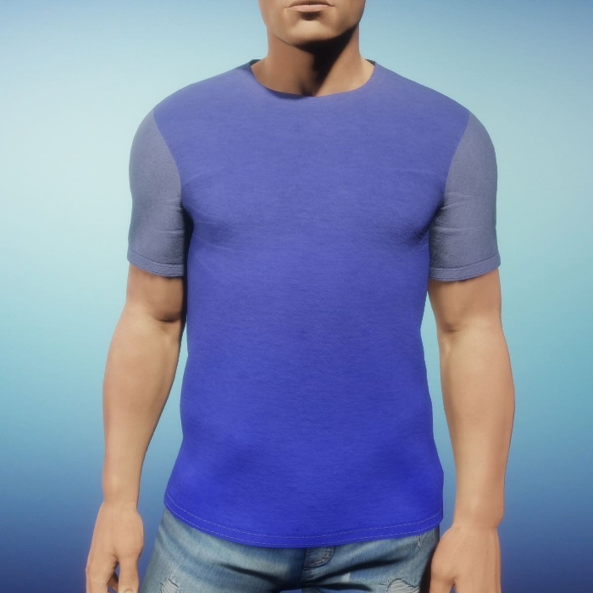 Mens basic tee in ombre tones with top stitching. The sleeves are somewhat shorter and tighter than my previous mens' t-shirts. Please be sure to hit the simulate button in the lookbook when wearing any clothing made in Marvelous Designer. This much improves the fit as well as gives you the chance to push the fabric around to your liking. It is advised to not wear hair until you have completed the simulate process.