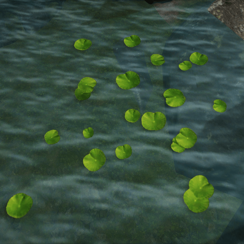 Water leaves for ponds and lakes. Use with transparent water. Flat round shape with no collision. 16 triangles.