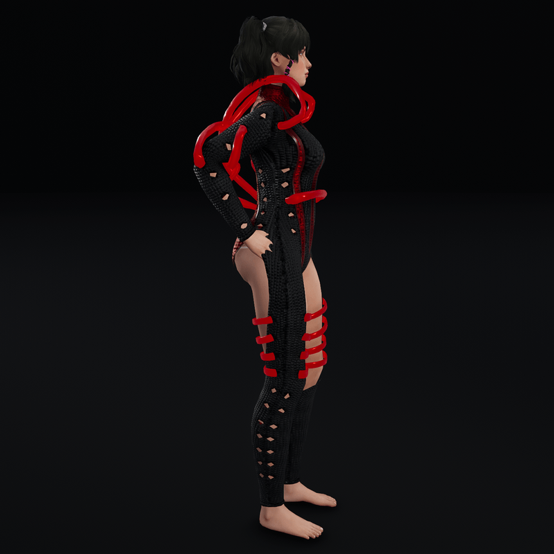 Futuristic Body Suit with Metal Tubes. What are the tubes for? Do they feed oxygen to your blood stream or is it the embarrassing result of a bicycle accident. Either way you will surely get attention in this futuristic outfit. Get Demo Here: https://store.sansar.com/listings/7b679803-f9f6-4ee0-8c81-31dc61d97e25/demo---futuristic-body-suit-with-metal-tubes---demo Trying on the available Demo is the best way to assure your satisfaction with quality and fit. The lighting isn't the best in the lookbook and the shoulders seem to fit funny in the lookbook as well, so I recommend wearing the demo in world to see how it truly looks on you. Visit my inworld store experience to find discounted items that or not available on the marketplace and also look for miniature butterflies to find free mystery gifts! https://atlas.sansar.com/experiences/lonaleelancaster/lona Made in Marvelous Designer and can be adjusted to fit most avatars. Please try a demo to assure fit and satisfaction. To learn more about transforming and adjusting Marvelous Designer clothing visit this link: https://help.sansar.com/hc/en-us/articles/115005693363-Fitting-Marvelous-Designer-clothing-to-your-avatar#some-tips
