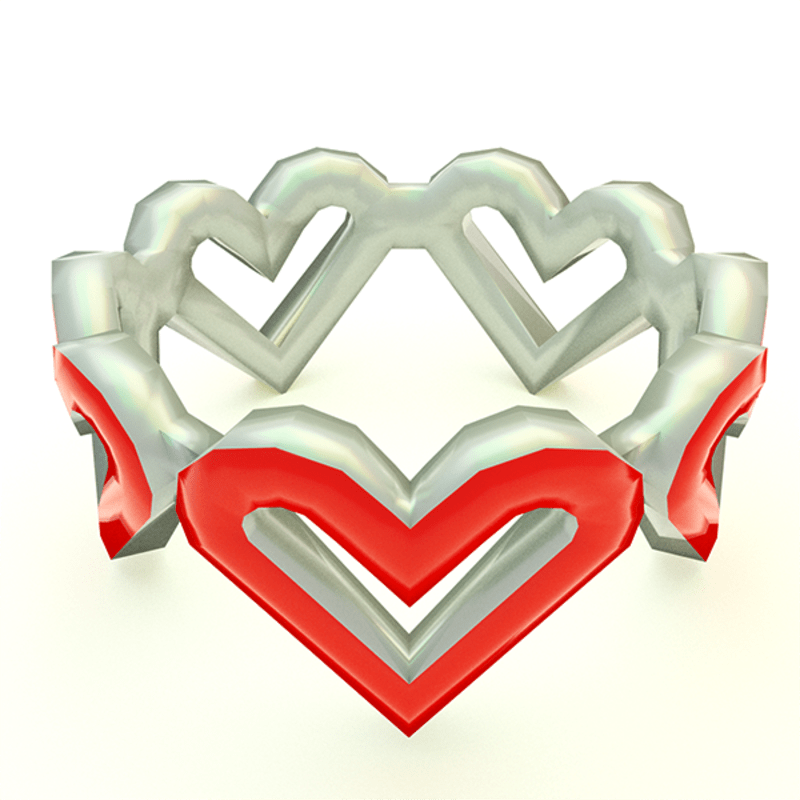 Name: Ring of Hearts ♀ Type: Accessory - Ring Finger Color: Red/ Carbon Quantity: 1 Item Number: 002 Geometric Detail 386 Verticies 778 Edges 383 Faces 786 Triangles