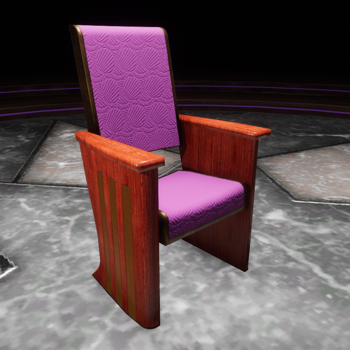 Art Deco dining room chair. Texture: 1024 Tris: 1.6k Collision and Pose installed. Adjustable Emissive side stripes