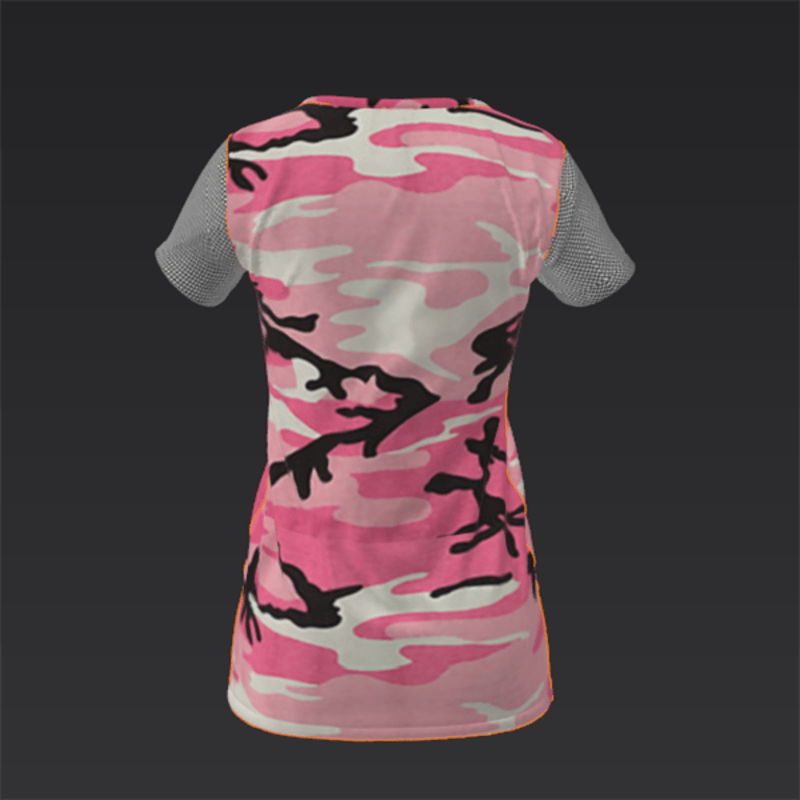 Pink Camouflage T-Shirt with short sleeves and black net sleeves
