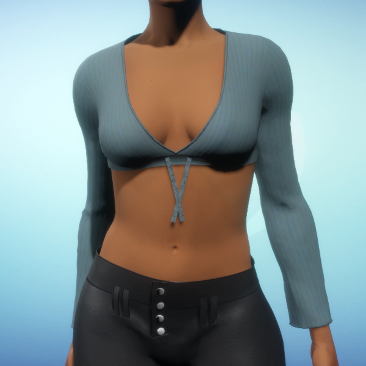 Cropped Long-sleeved V-neck - Teal Knit